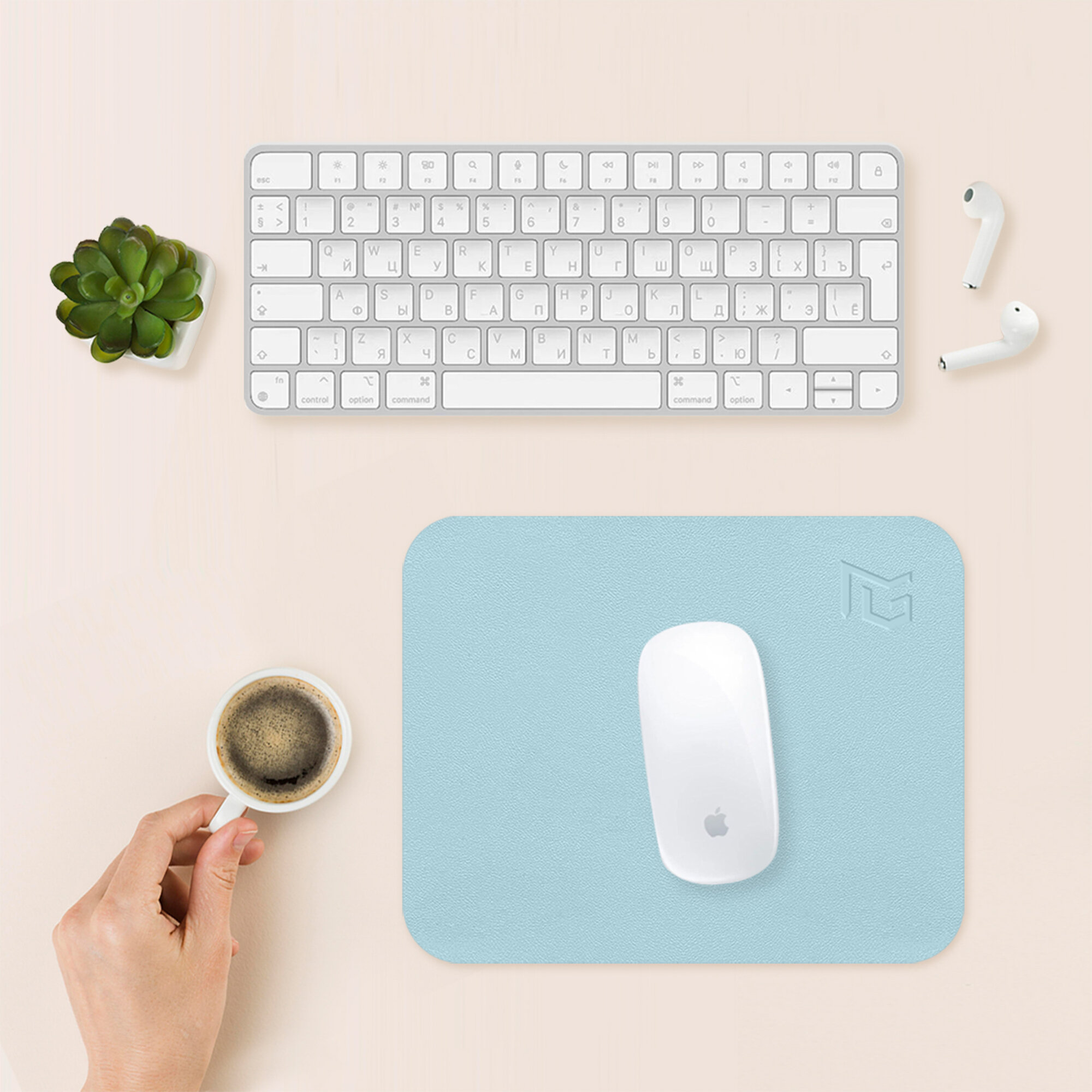 Коврик для мышки маленький кожаный молочный