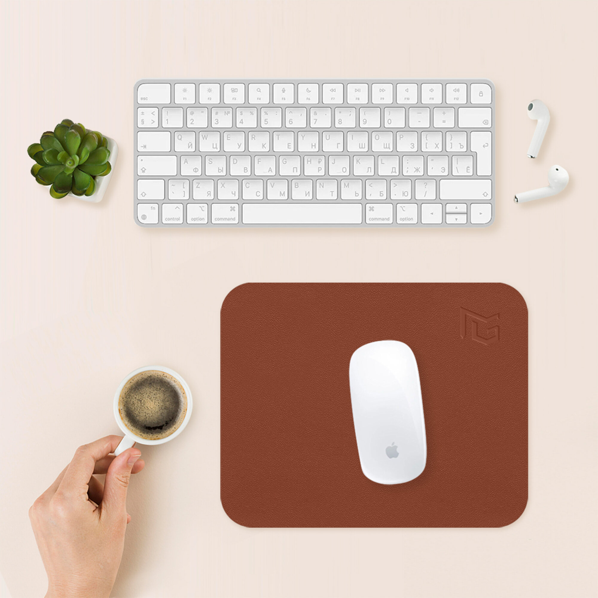 Коврик для мышки маленький кожаный молочный
