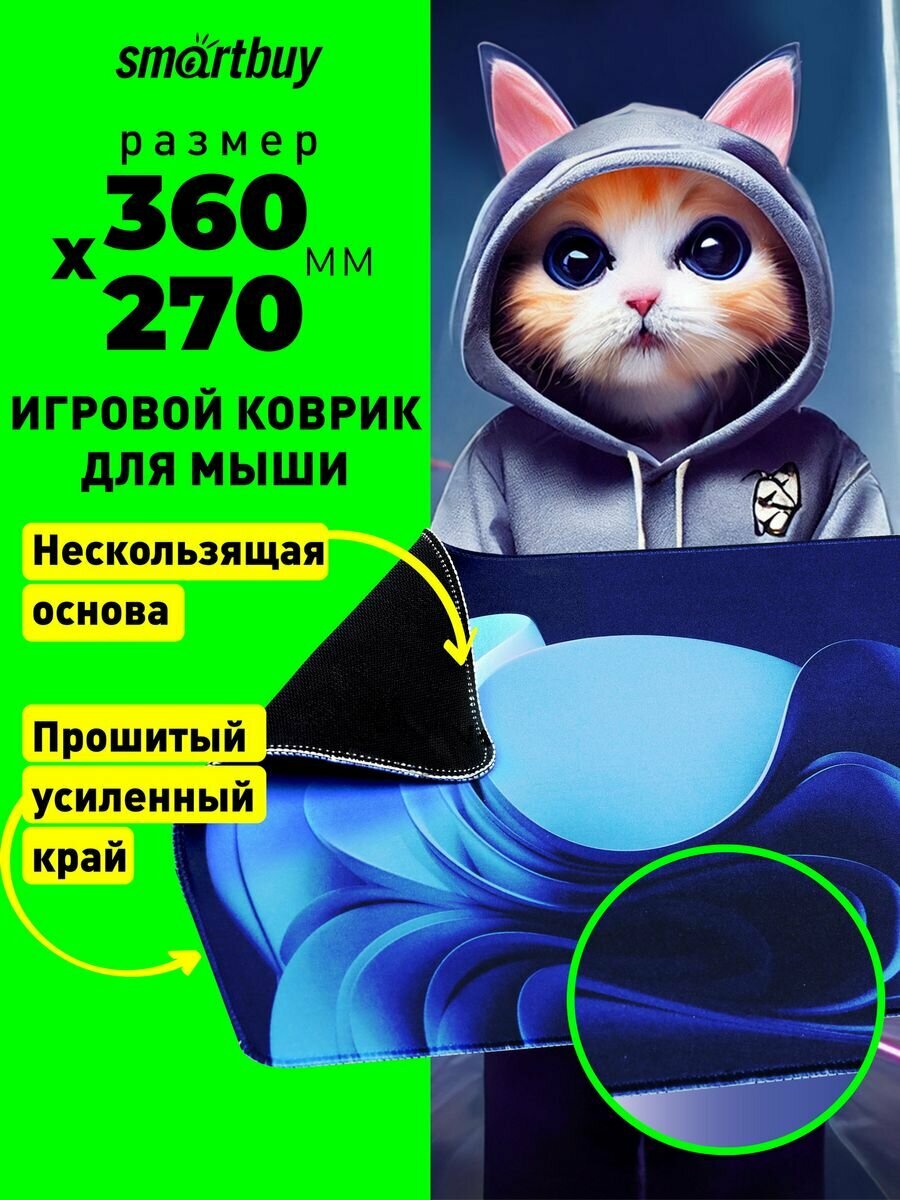 2 шт, Коврик для мыши Smartbuy Cat-1, 360*270*3мм, ткань+резиновая основа