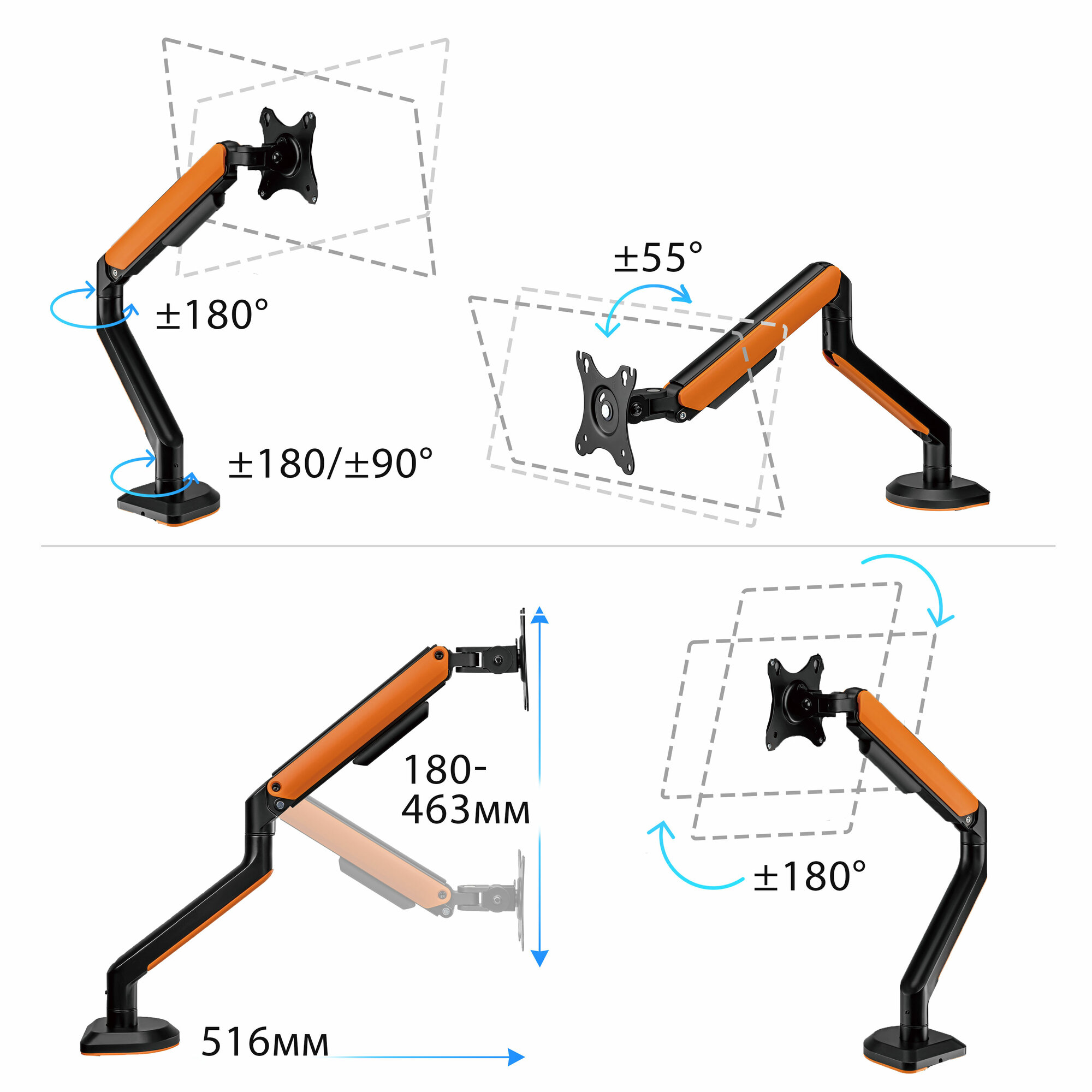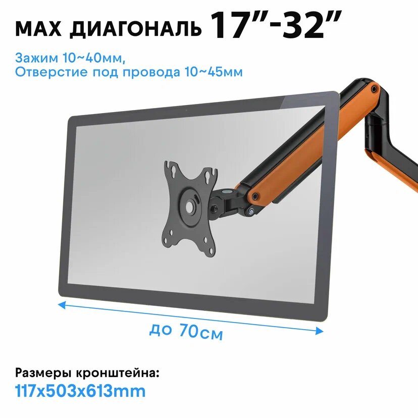 Купить Кронштейн для монитора Godoo 17"-32" дюймов настольный с RGB подсветкой LDT63-C012GL Matte Black & Orange