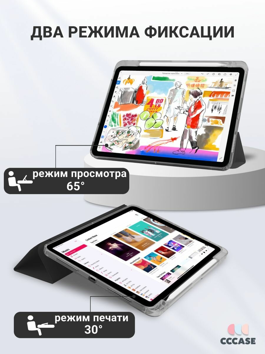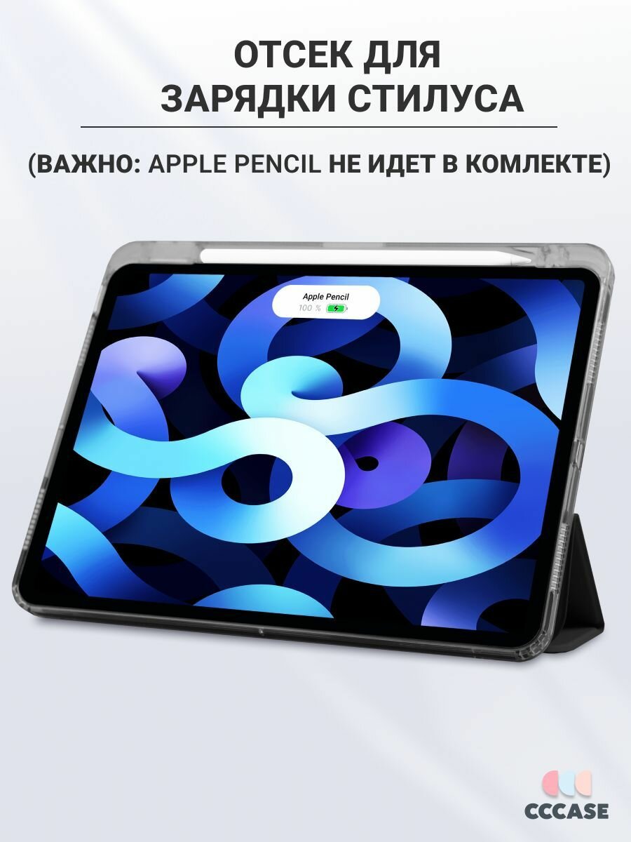 CCCASE / Чехол на iPad Air 11 M2/M3 (2024/2025) / Air 4/5 (2020/2022), с отделением для стилуса и прозрачной стенкой