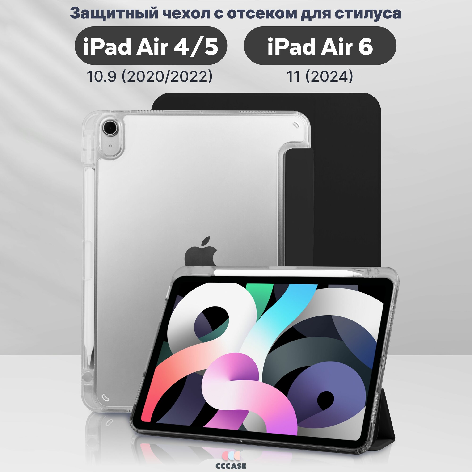 СохранитьCCCASE / Чехол на iPad Air 6 11(2024); iPad Air 5 10.9 (2022); iPad Air 4 10.9 (2020) - A2316 A2324 A2325 A2072 A2588 A2589 A2591 A2902 A2903 A2904, с отделением для стилуса и прозрачной стенкой, цвет: черный интересное: