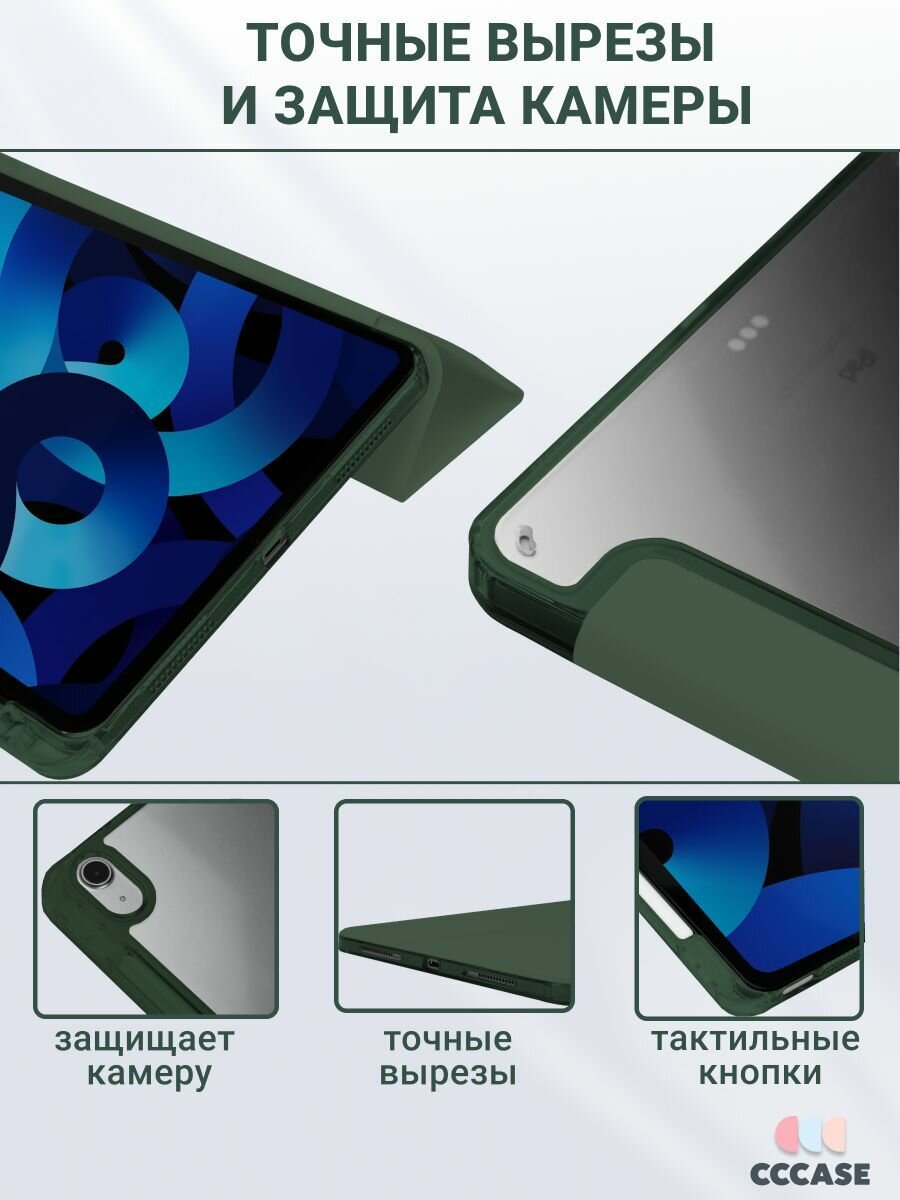 СохранитьCCCASE / Чехол на iPad Air 6 11(2024); iPad Air 5 10.9 (2022); iPad Air 4 10.9 (2020) - A2316 A2324 A2325 A2072 A2588 A2589 A2591 A2902 A2903 A2904, с отделением для стилуса и прозрачной стенкой, цвет: зеленый интересное: