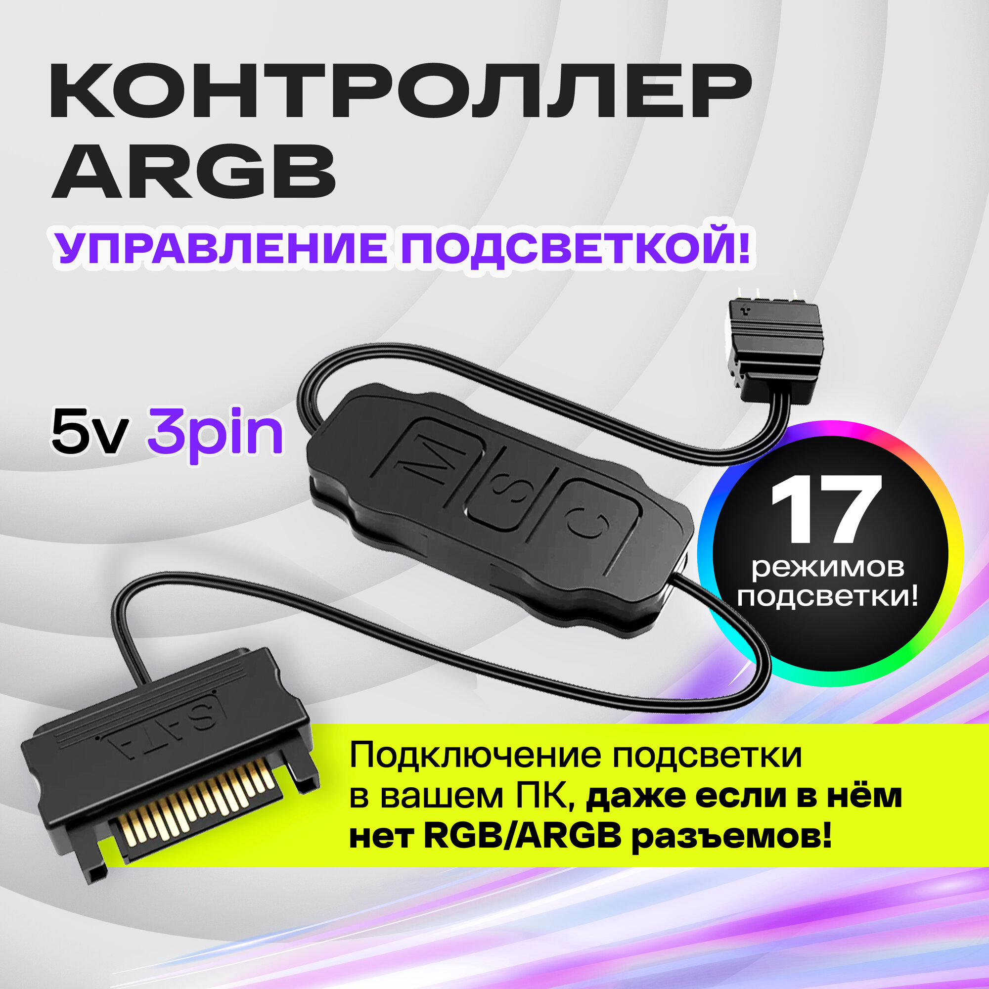 СохранитьКонтроллер ARGB для ПК. COOLMOON контроллер для вентиляторов с подсветкой 5v 3pin ARGB, питание SATA, черный интересное: