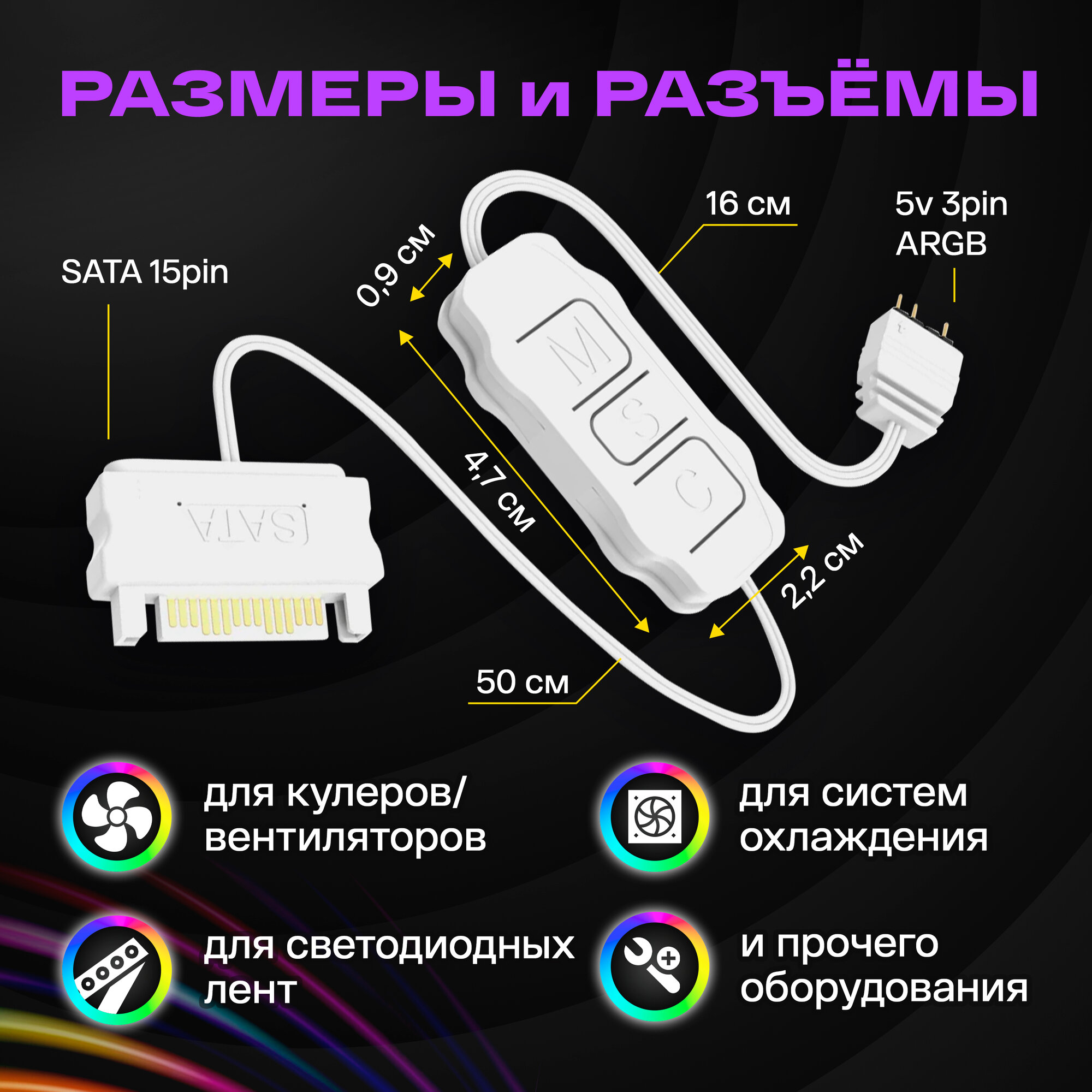 Контроллер ARGB для вентиляторов с подсветкой 5V3PIN, питание SATA 15 PIN, для управления кулеров c подсветкой корпуса