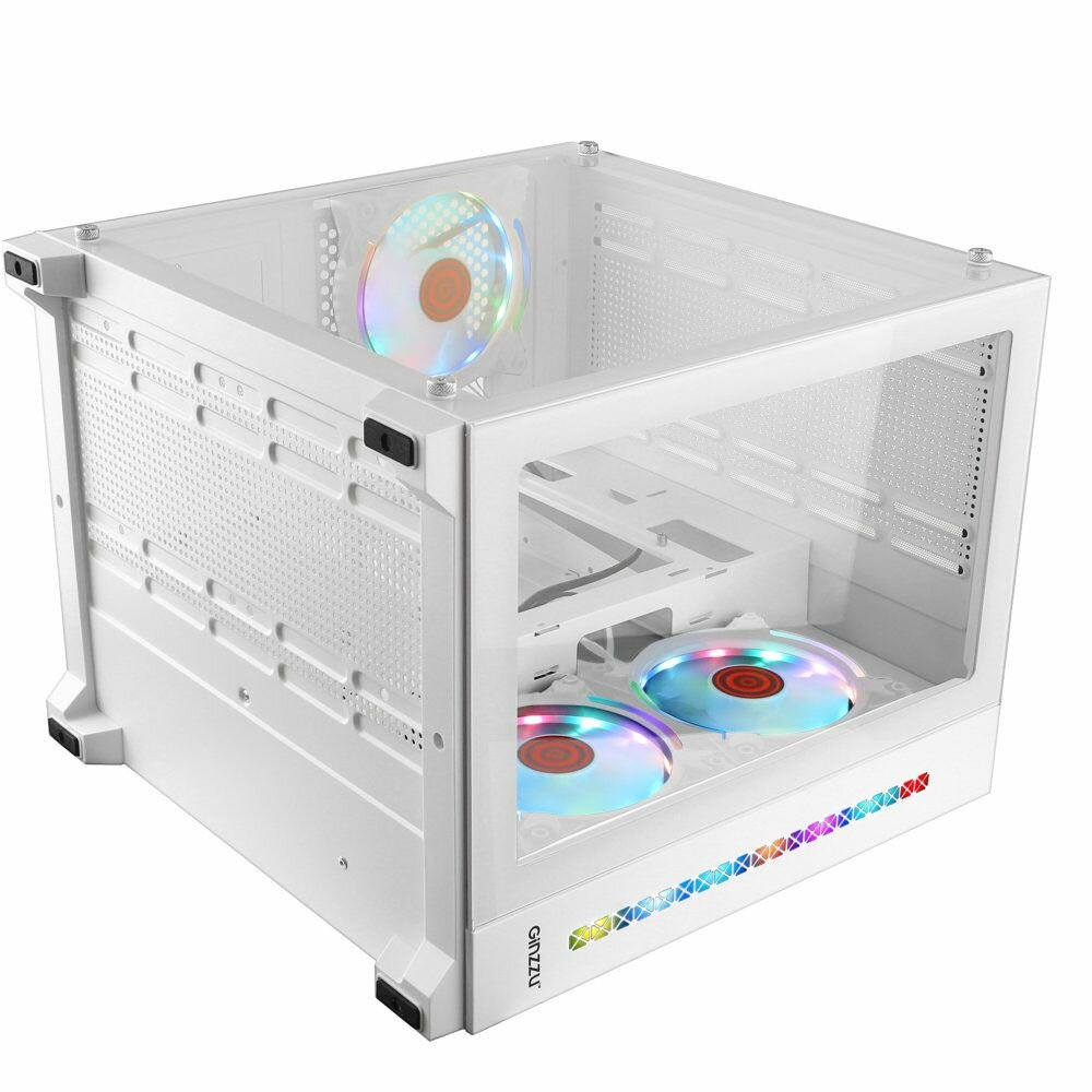 Корпус Ginzzu V350 mATX кубик, закаленное стекло, RGB подсветка, система охлаждения