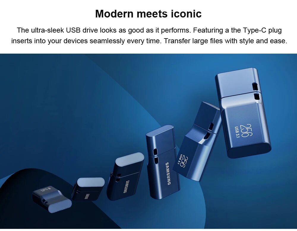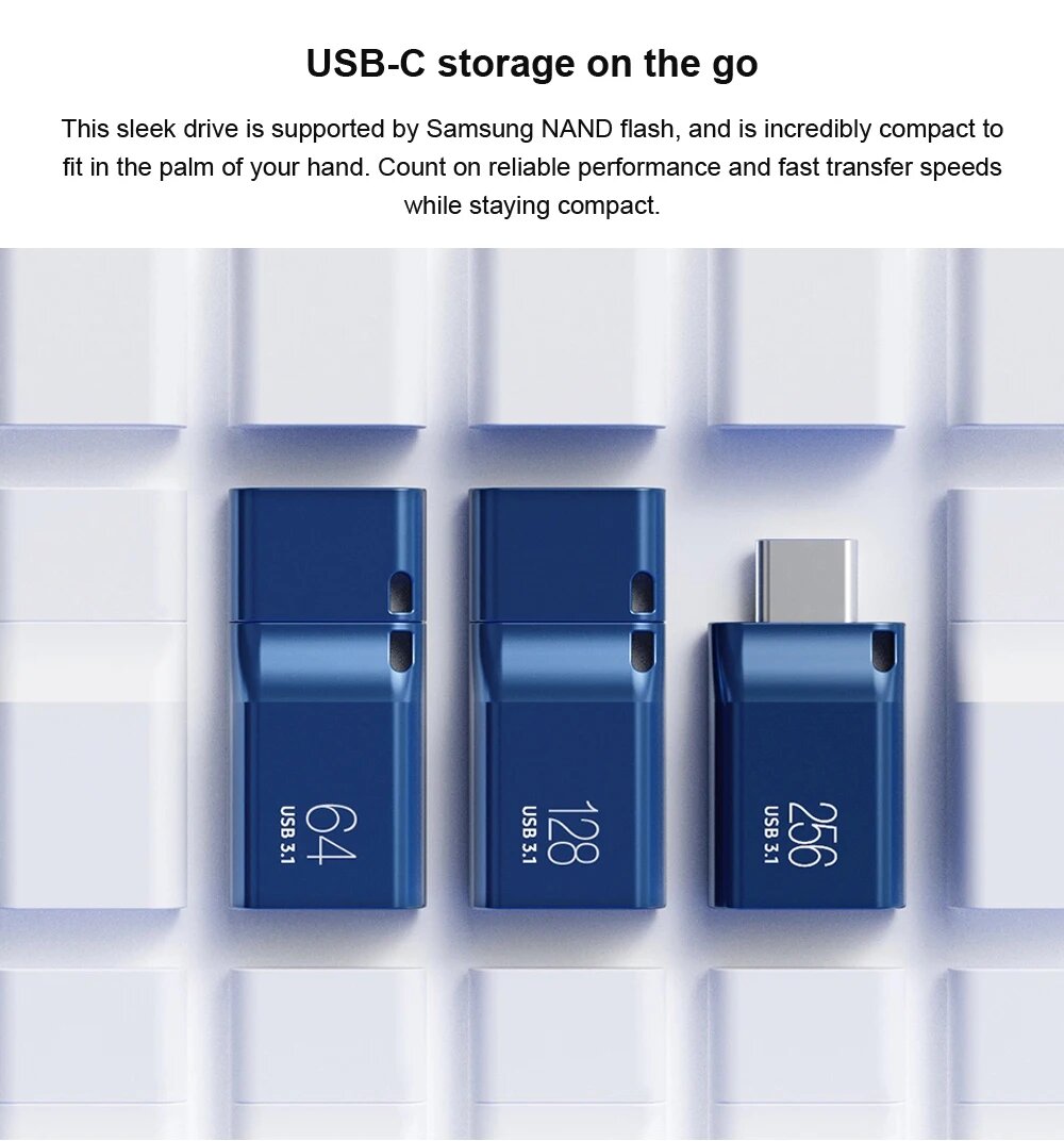 Флешка (flash-накопитель) Samsung MUF-256DA/APC, 256 ГБ, USB Type-C, синий пластик, MUF-256DA/APC