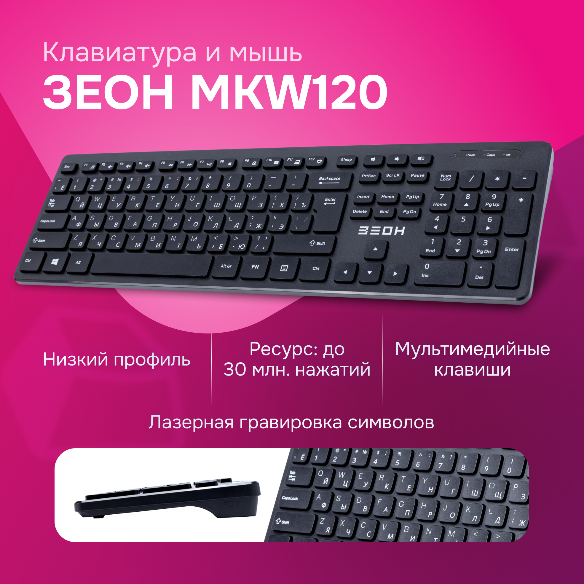 Комплект клавиатура + мышь Зеон MKW120 беспроводной, черный интересное: