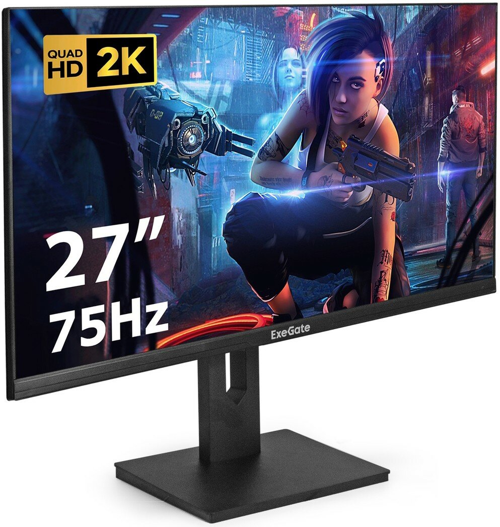 Монитор безрамочный с аудио 27" ExeGate SmartView ES2707TA (IPS LED Grade A+, 2K, 2560x1440@75Гц (WQHD), 16:9, 250cd/m2, 1000:1, 178°/178°, 1ms, интересное: