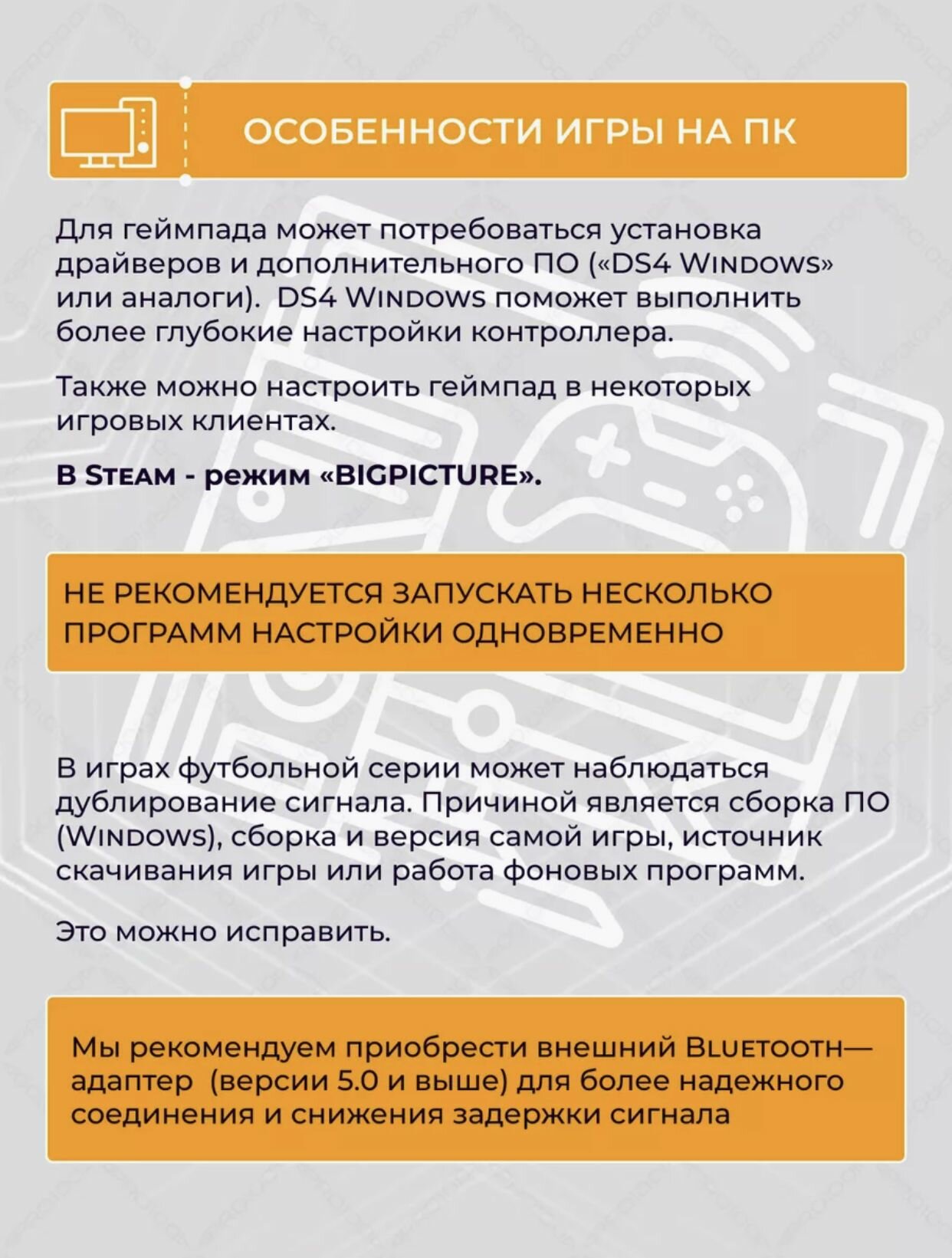 | Подробная комплектация | Геймпад беспроводной - 1 шт. Кабель micro usb - 1 шт. Коробка - 1 шт. Инструкция - 1 шт. |