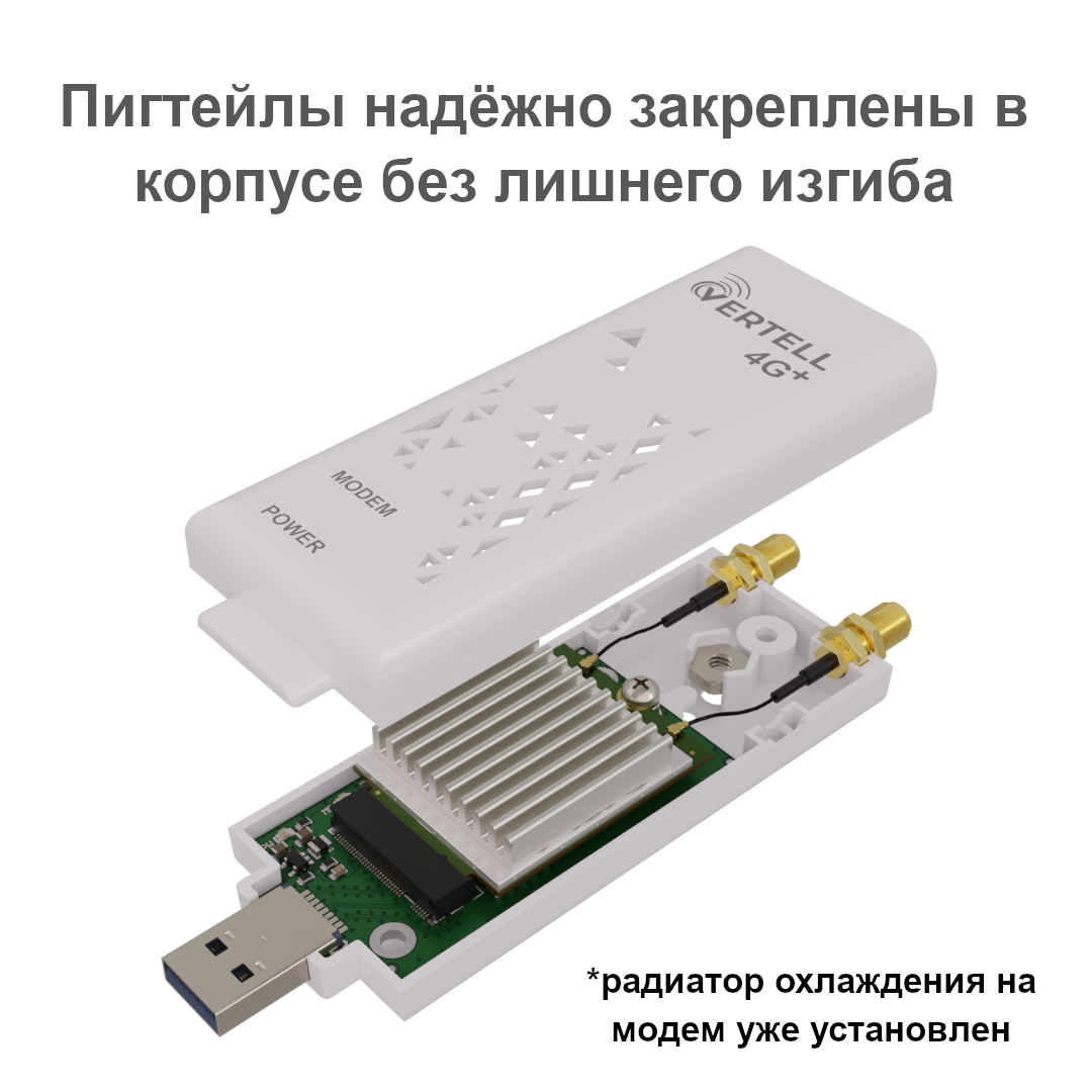 Купить Модем USB 3.0 Vertell LONG M.2 в корпусе на базе Fibocom L850-GL с агрегацией частот Cat 9 со скоростью до 450 Мбит/с