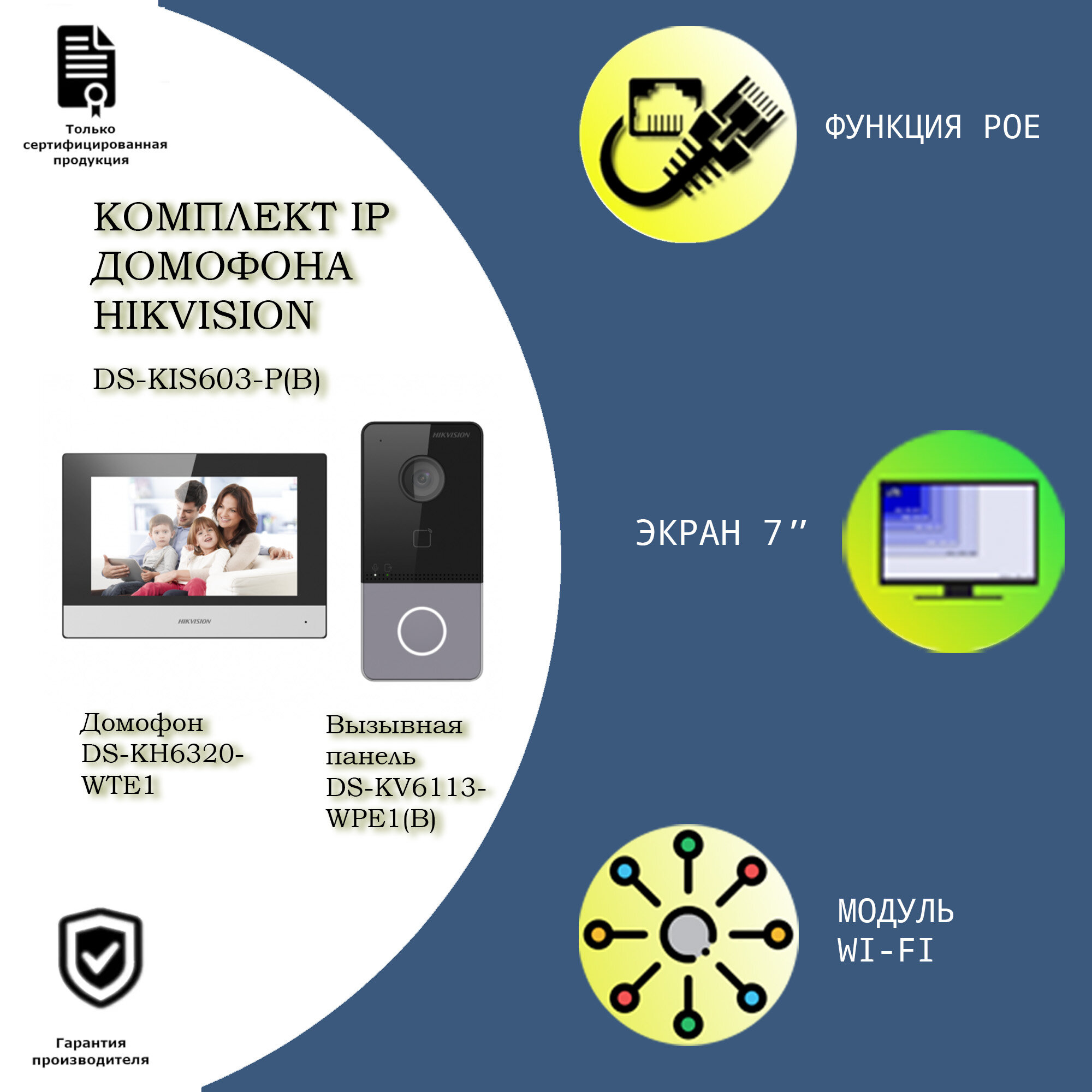 Комплект IP видеодомофона с Wi-Fi для дома, квартиры, дачи DS-KIS603-P(С) c вызывной панелью интересное: