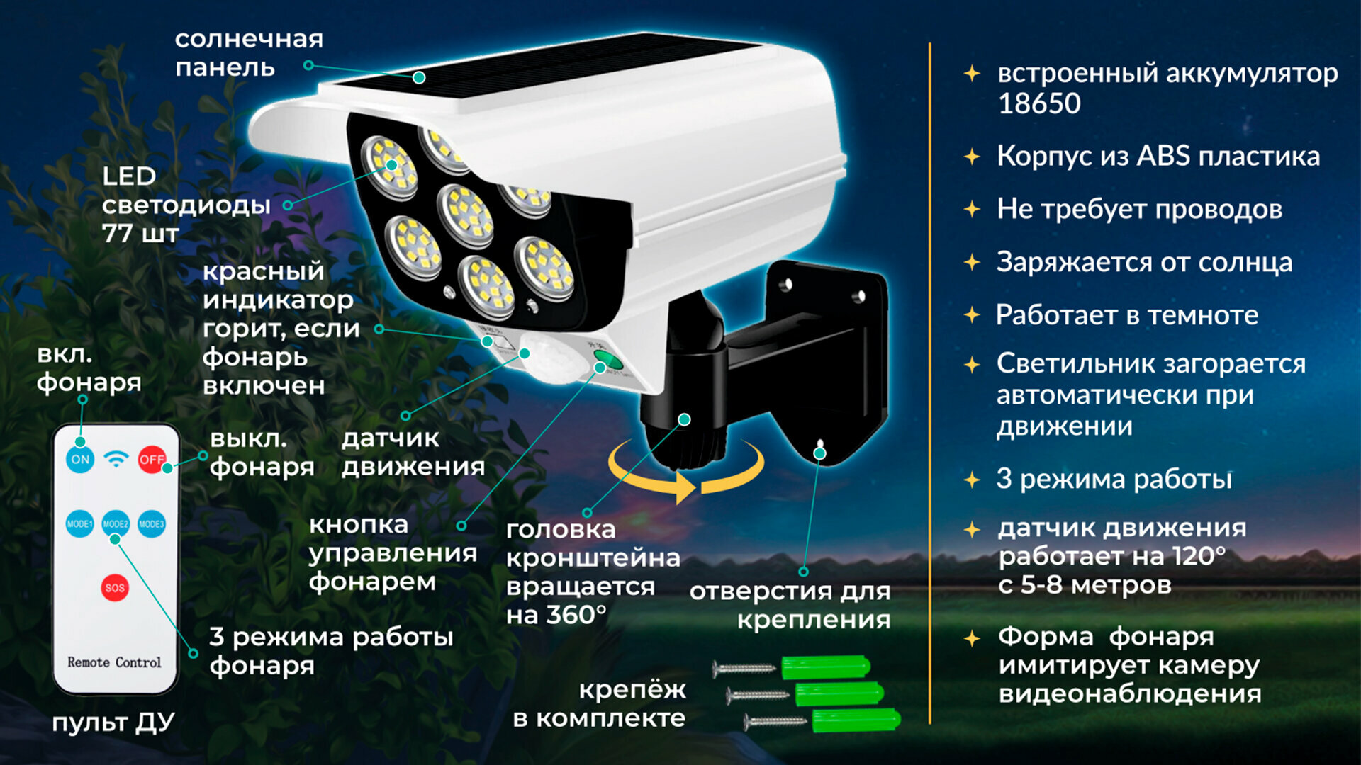 | Питание | солнечная панель |