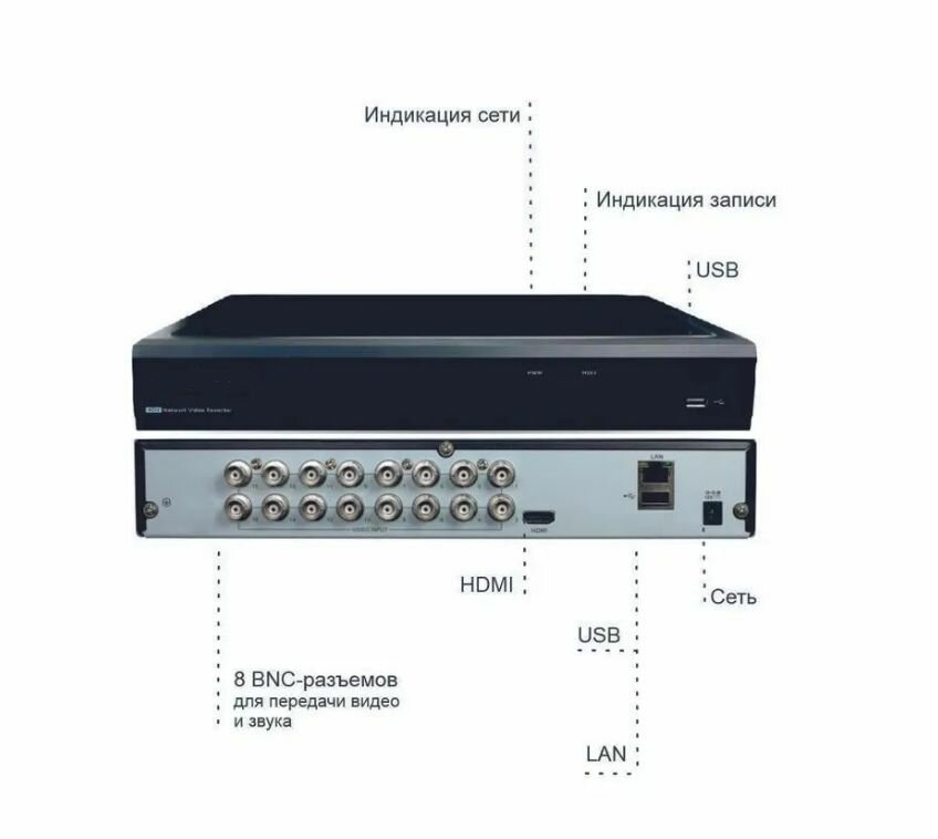 | Комплектация | Видеорегистратор 1шт, блок питания 1шт, мышь USB, пульт дистанционного управления, SATA кабель, крепежные винты |