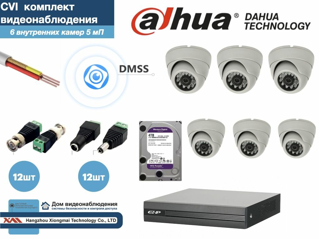 Полный готовый DAHUA комплект видеонаблюдения на 6 камер 5мП (KITD6AHD300W5MP_HDD4Tb) интересное: