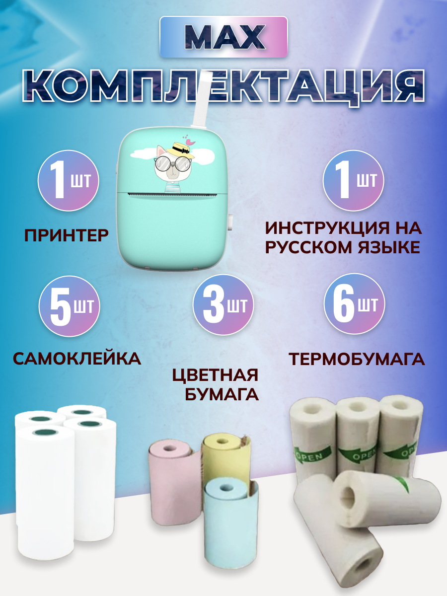 | Комплектация | портативный мини-принтер, бумага, инструкция, usb-кабель |