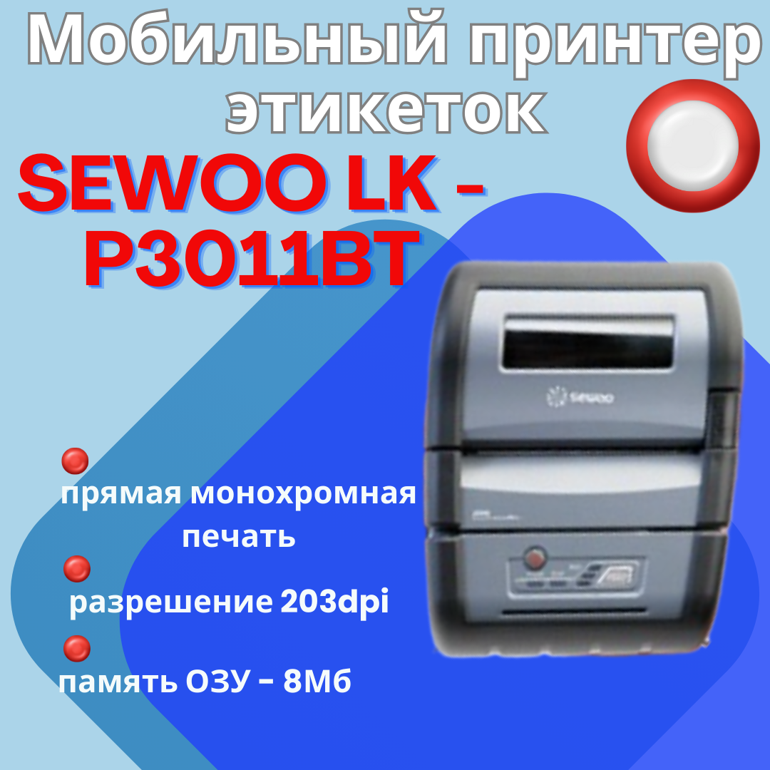 Мобильный принтер этикеток , стикеров (термо, 203dpi, 3") SEWOO LK-P30II BT интересное: