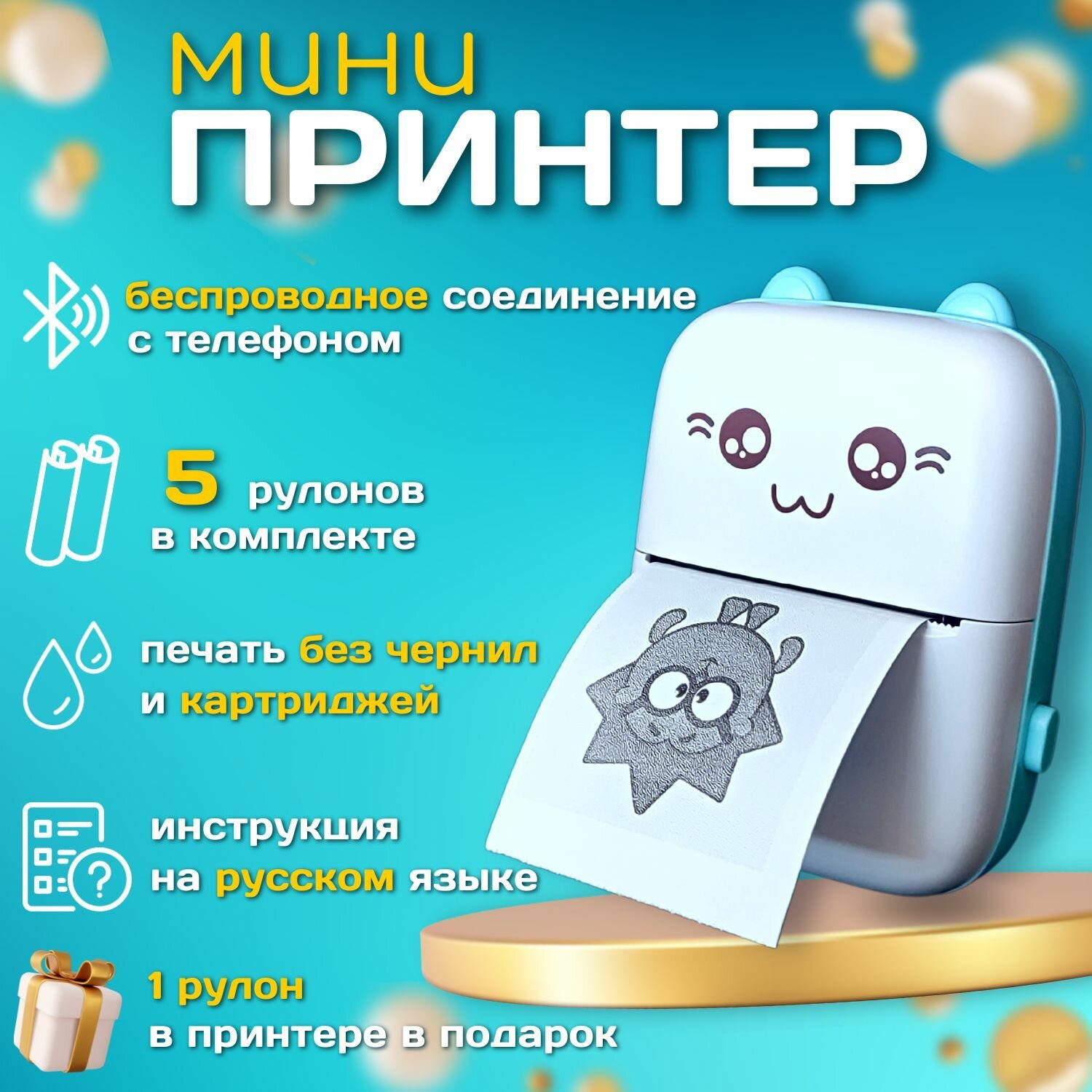 | Комплектация | мини принтер для телефона; инструкция для детского принтера; usb-кабель для зарядки принтера портативного 6 рулонов термобумаги |