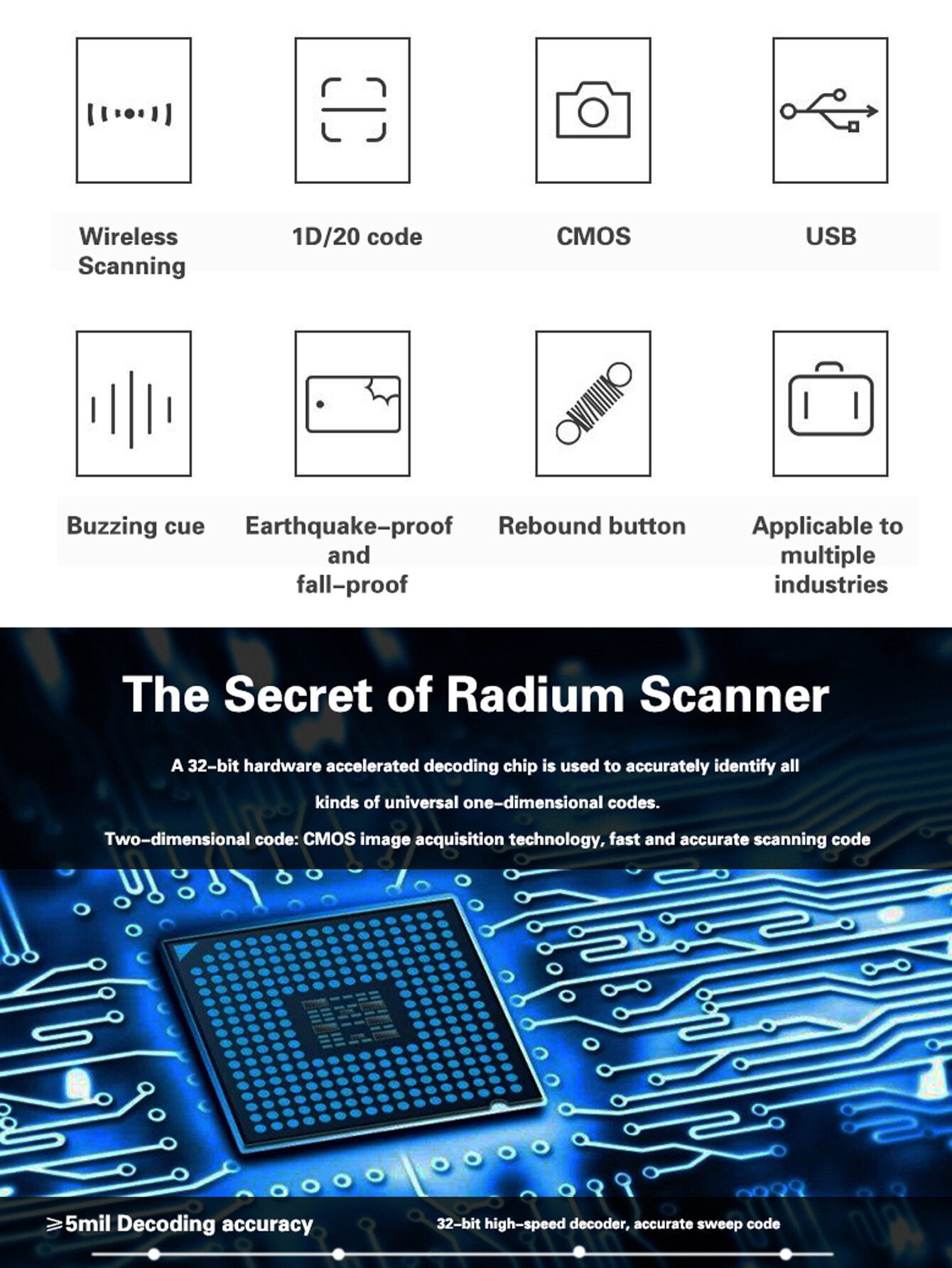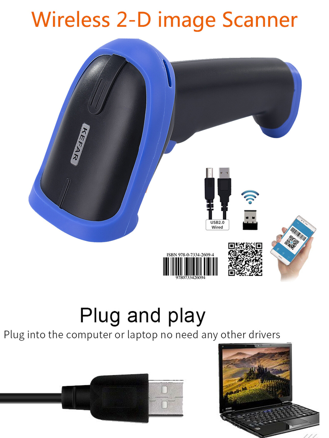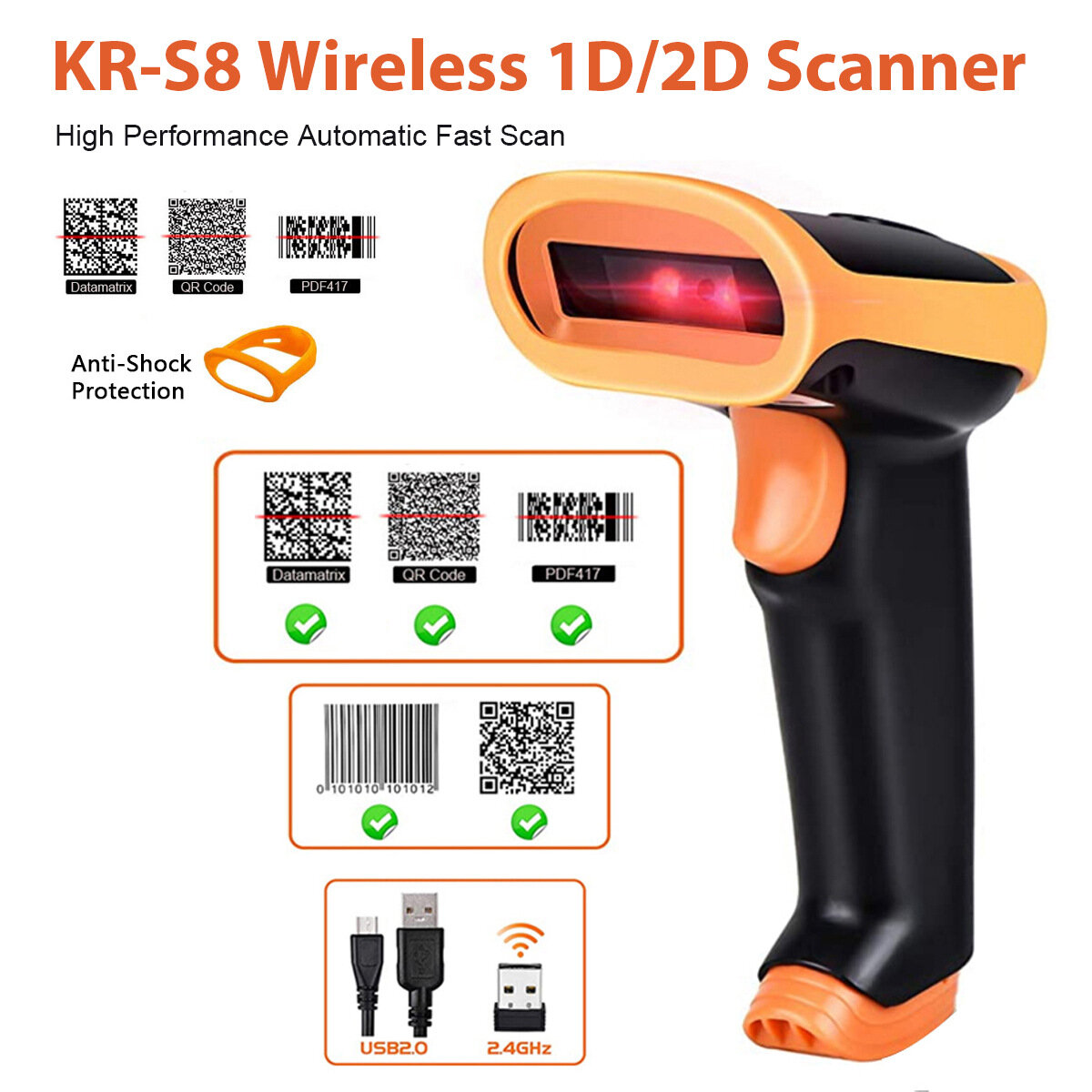 Беспроводной сканер штрих-кодов KEFAR KR-S8, 2.4G, двухмерный интересное: