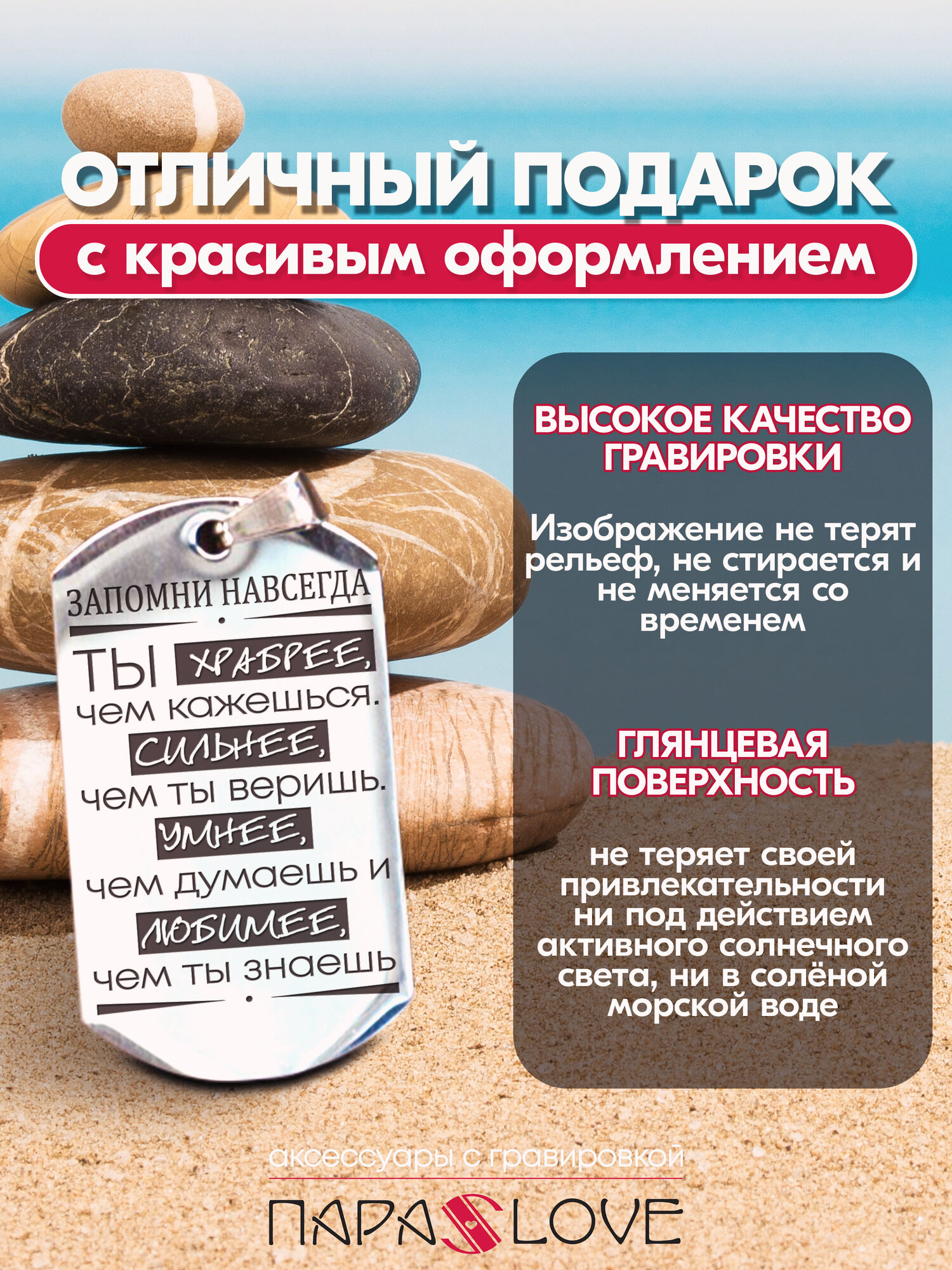 Брелок PARA S LOVE Жетон Ты храбрее, чем кажешься, глянцевая фактура, бесцветный интересное: