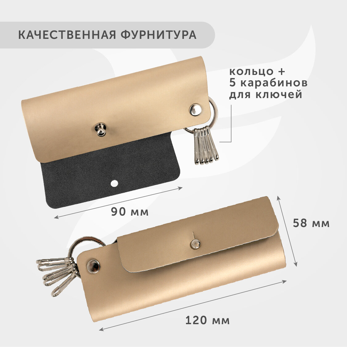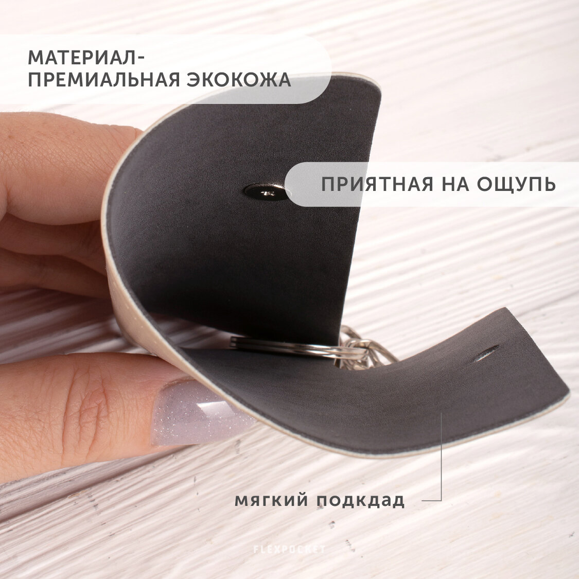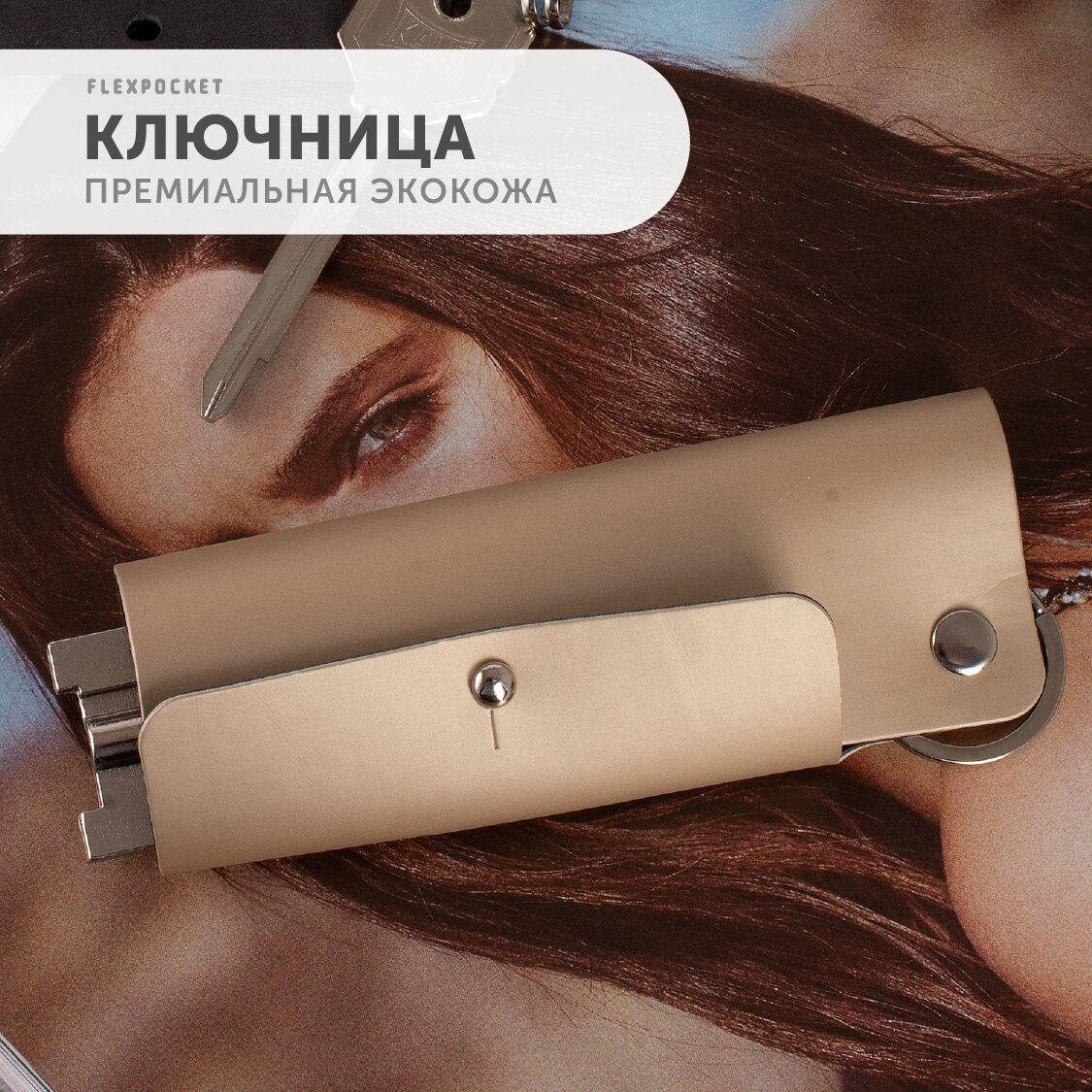 Ключница из экокожи Flexpocket на кобурной кнопке с карабинами на кольце, чехол для ключей, цвет бежевый интересное: