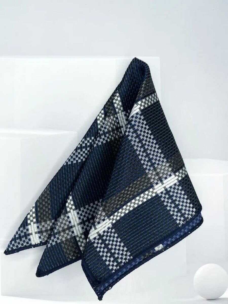 Галстук клетчатый сапфировый и платок в карман пиджака