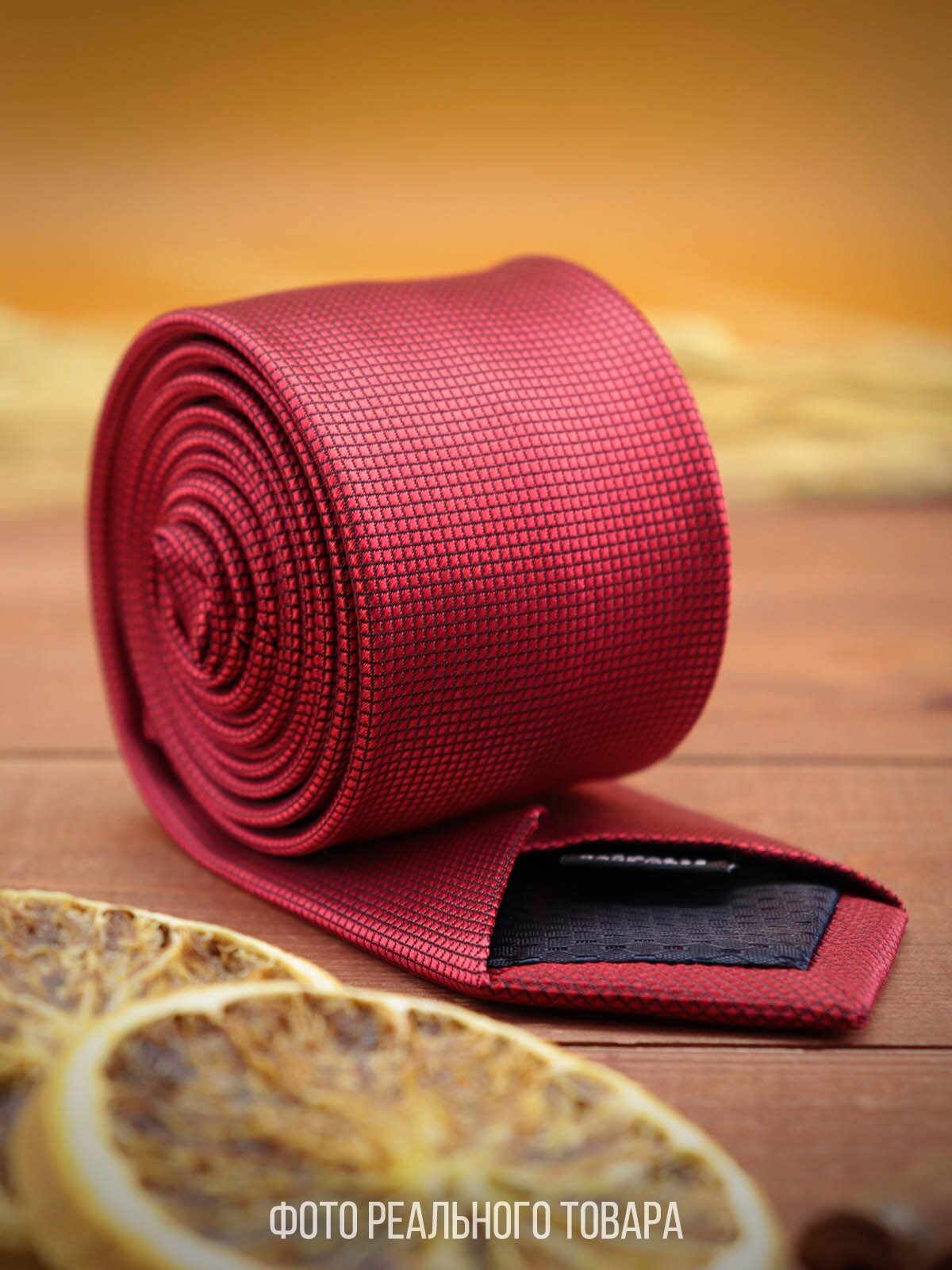 | Подробная комплектация | Галстук мужской узкий красный однотонный с клеточной текстурой - 1 шт. |