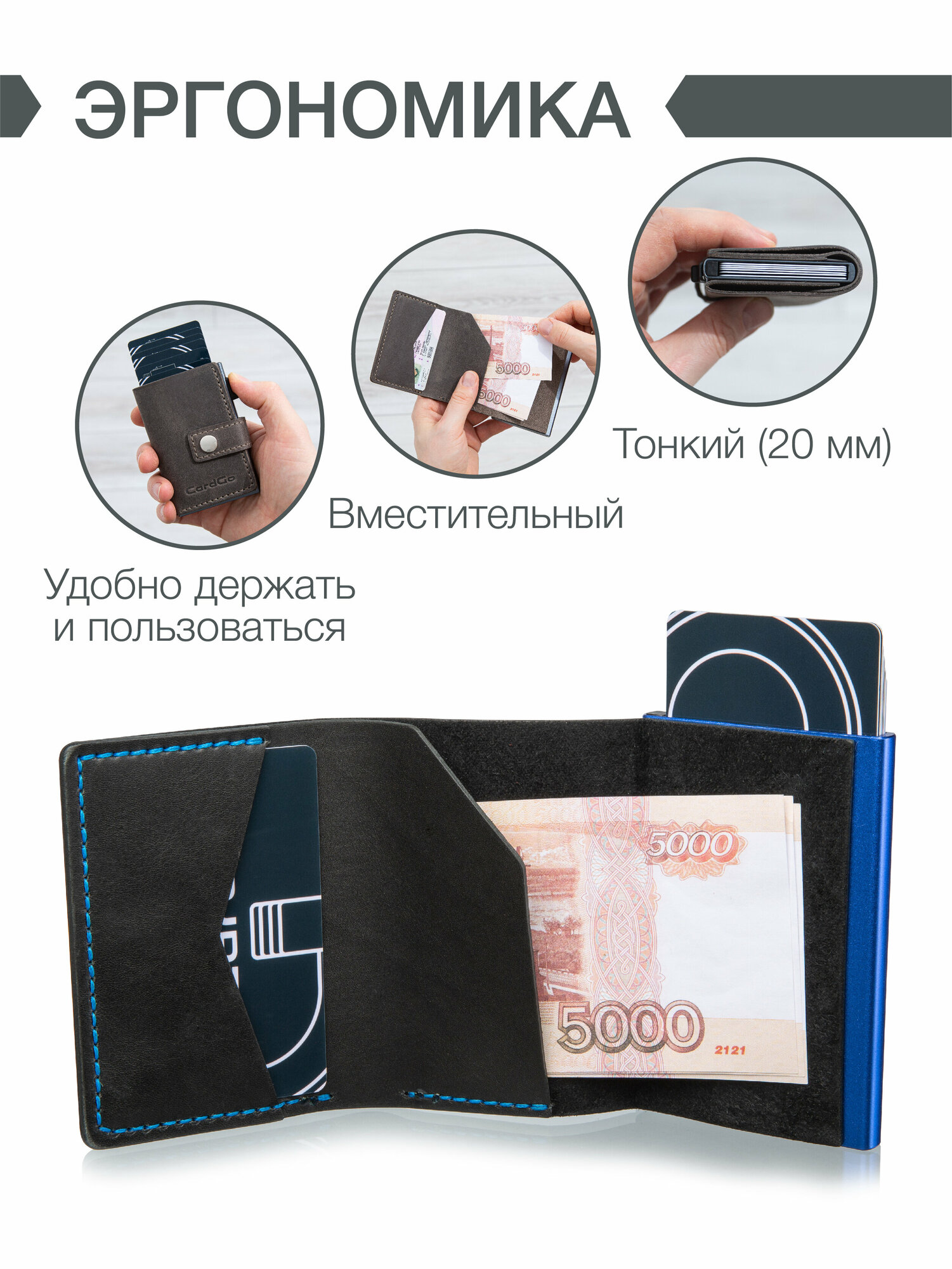 СохранитьМини-кошелек CardGo из натуральной кожи со встроенным алюминиевым корпусом (RFID / NFC защита) черно-синий интересное: