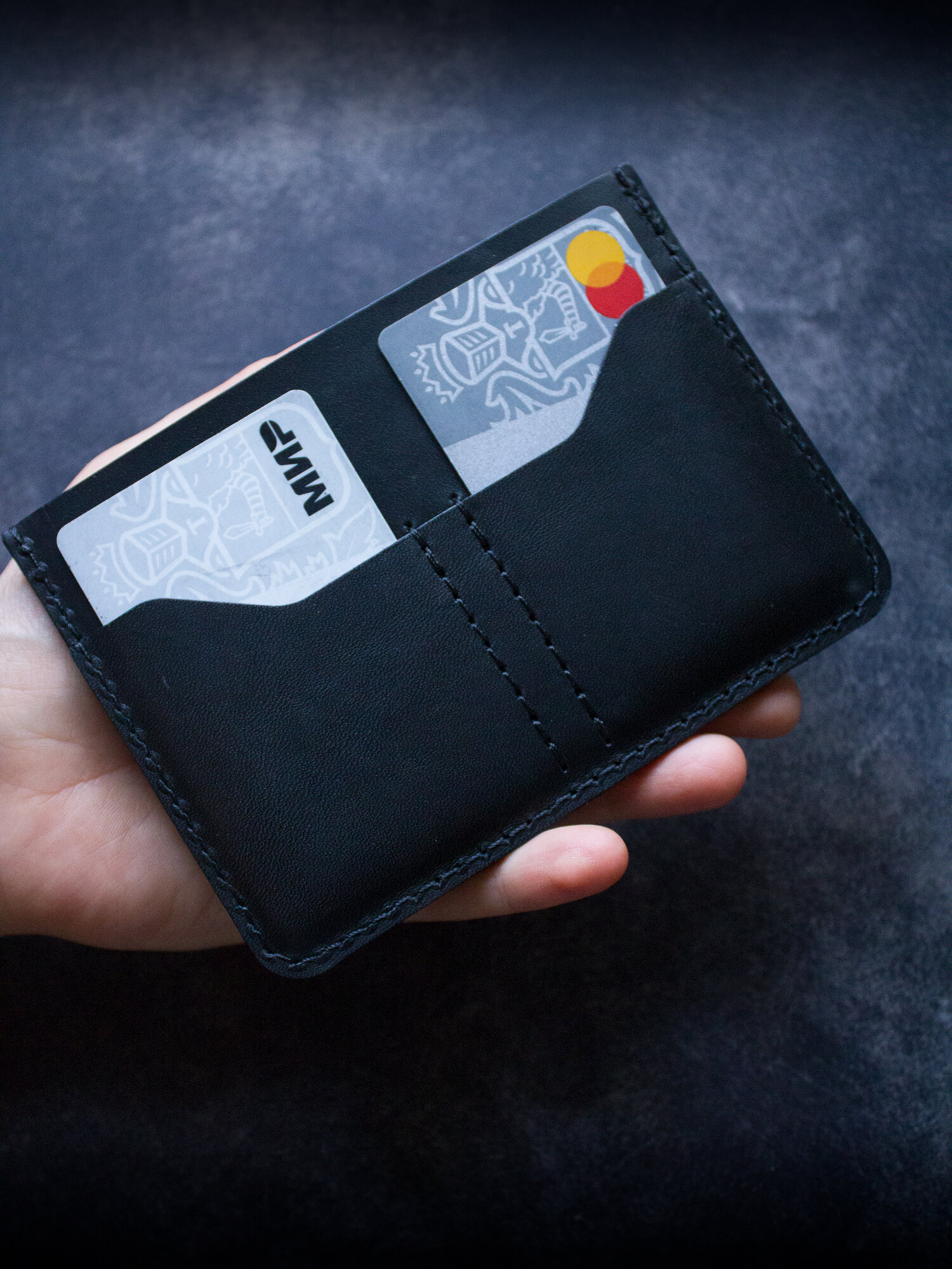 Докхолдер обложка для документов (СТС, права, карты) KOVACH из натуральной кожи чёрного цвета с чёрной строчкой ручной работы интересное: