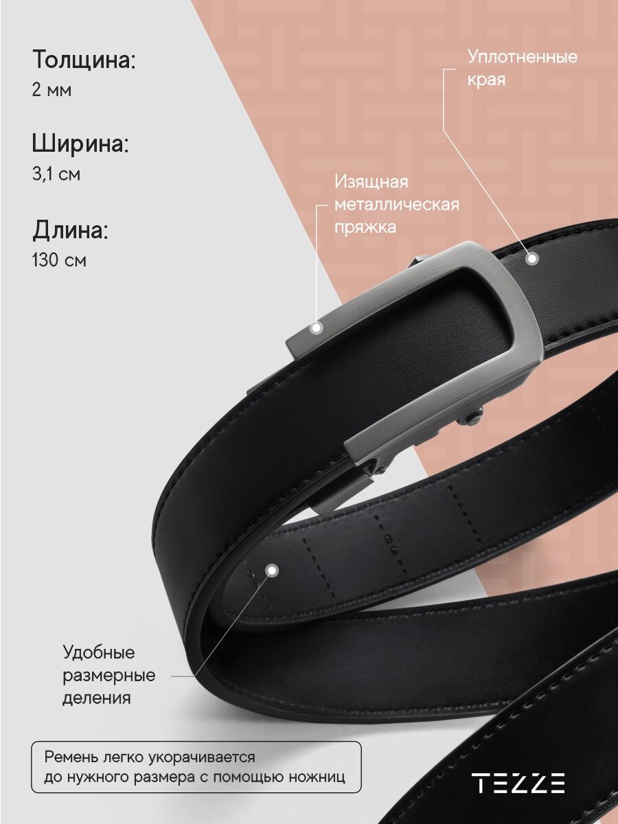 Ремень AksyBelt для мужчин, размер 120, черный гладкий