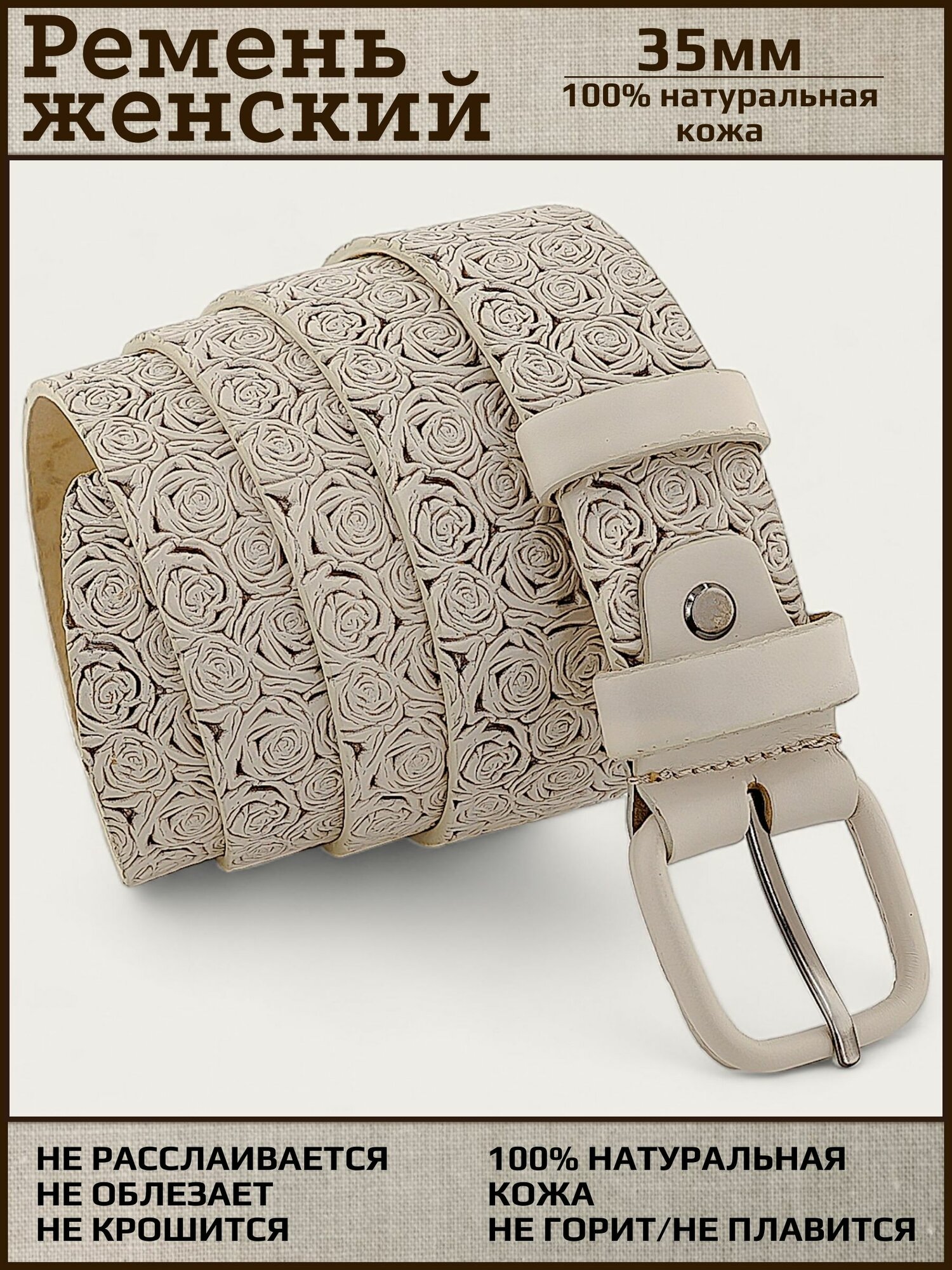 СохранитьРемень женский натуральная кожа AKSY BELT, молочный, роза, кожаная пряжка, 105 см интересное: