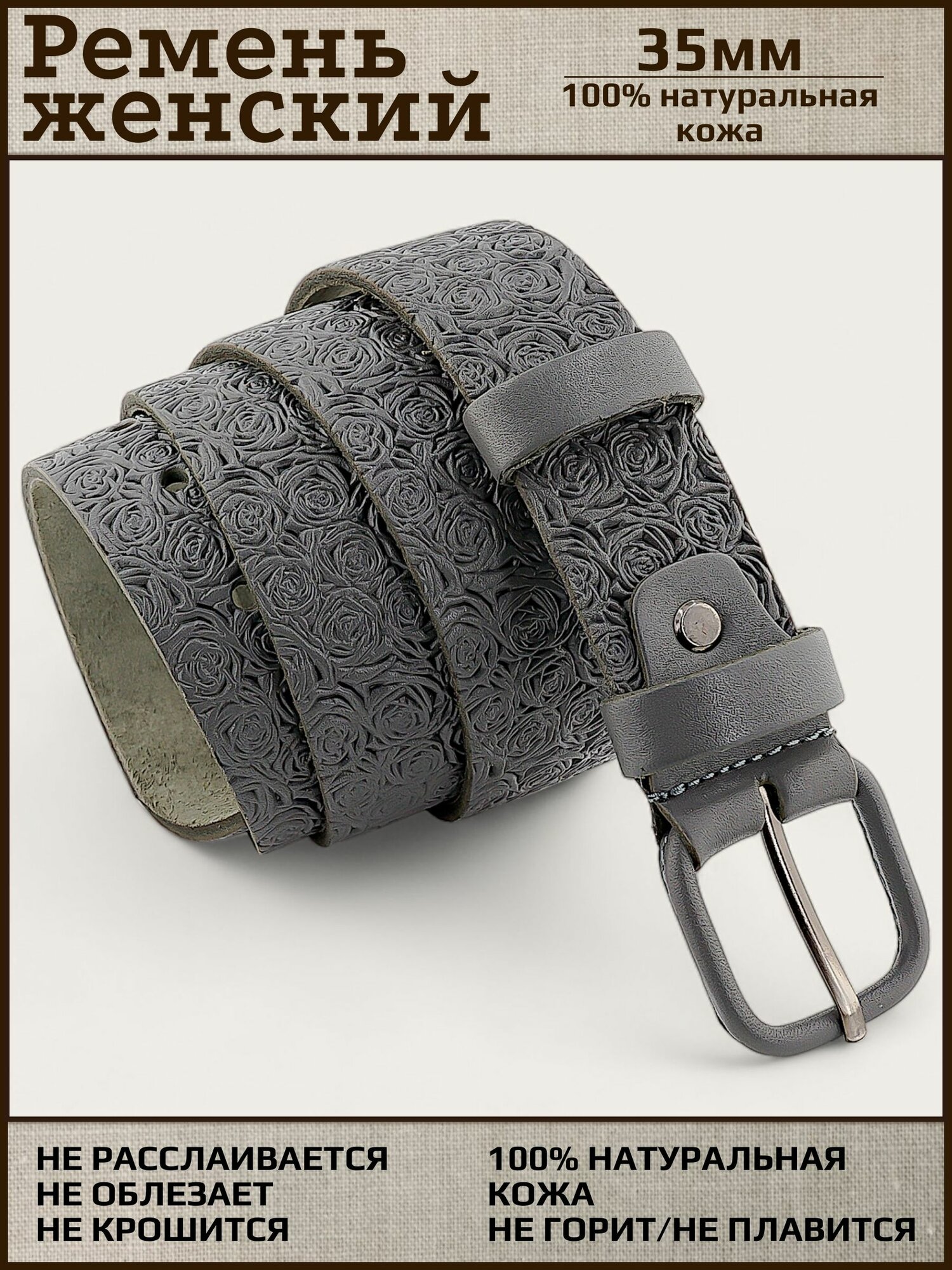 СохранитьРемень женский натуральная кожа AKSY BELT, серый, роза, кожаная пряжка, 120 см интересное: