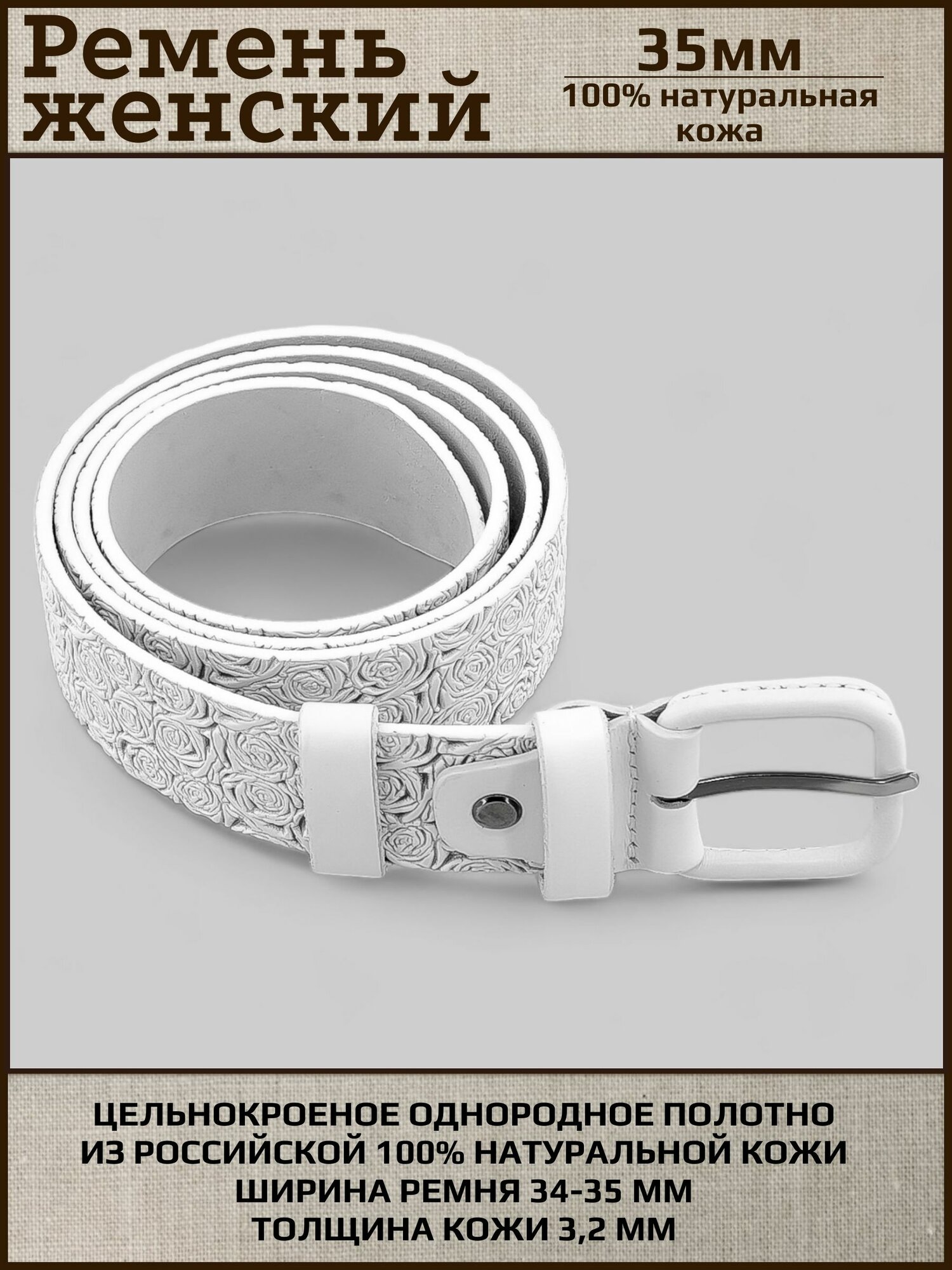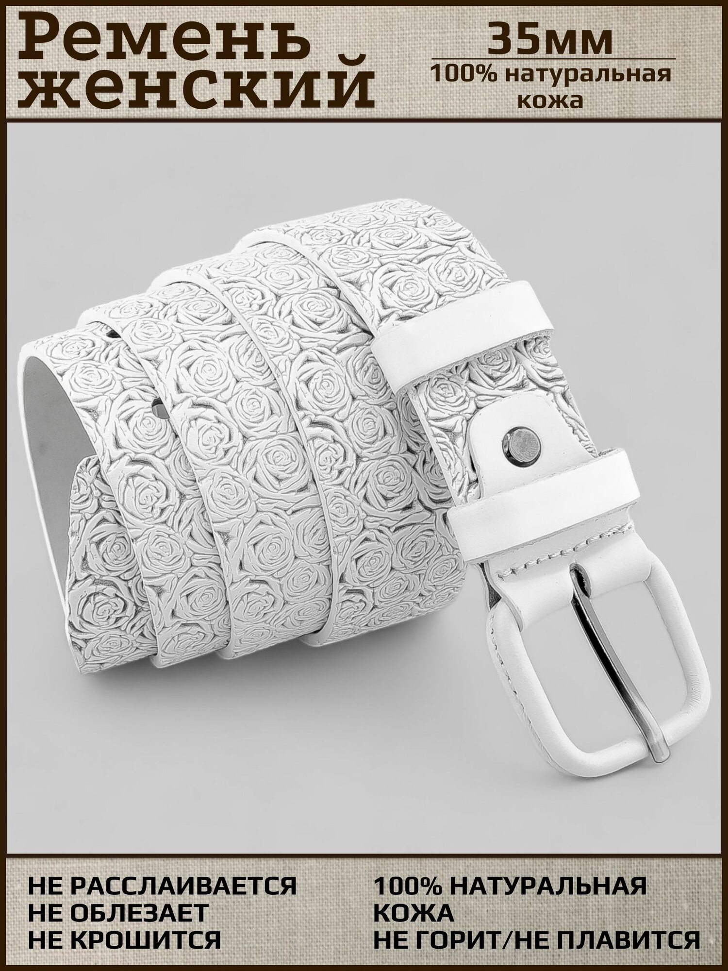 Ремень женский натуральная кожа AKSY BELT, белый, роза, кожаная пряжка, 110 см
