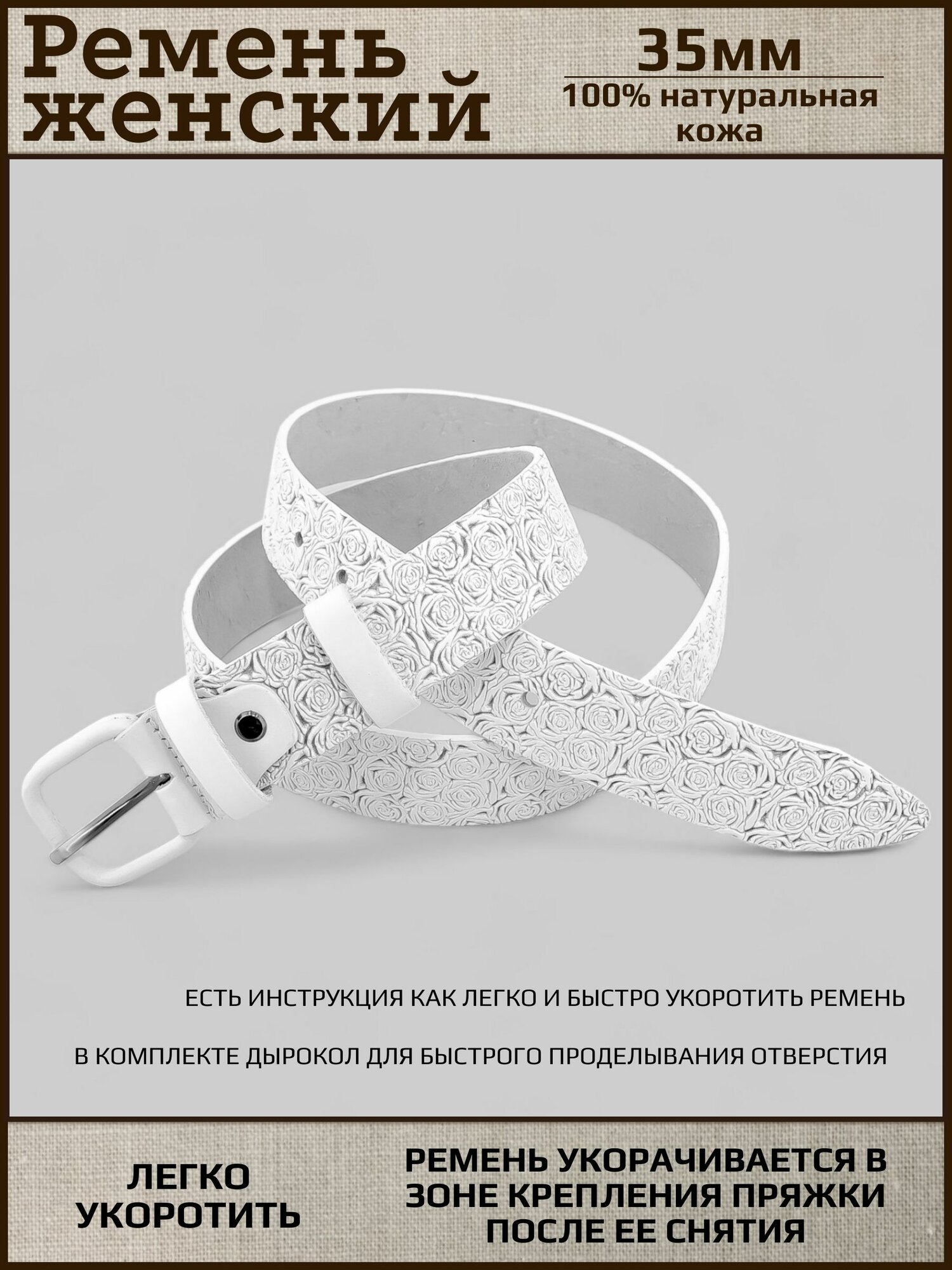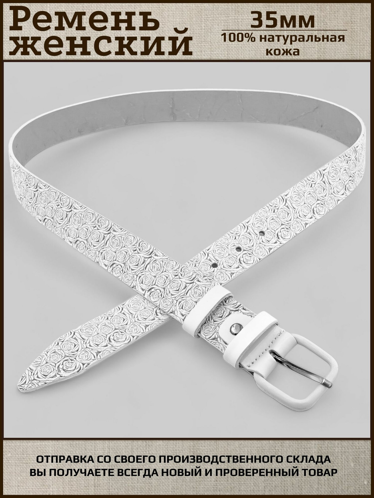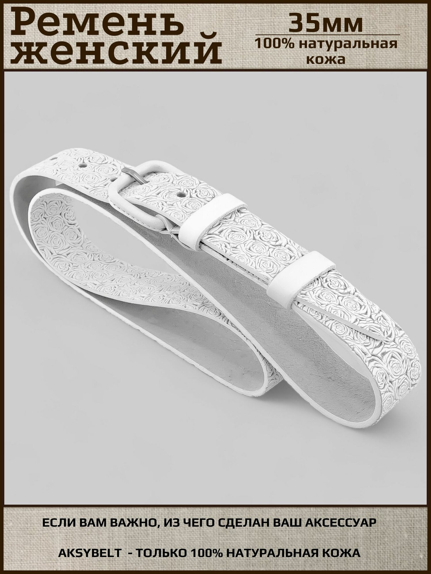 Купить Ремень женский натуральная кожа AKSY BELT, белый, роза, кожаная пряжка, 105 см