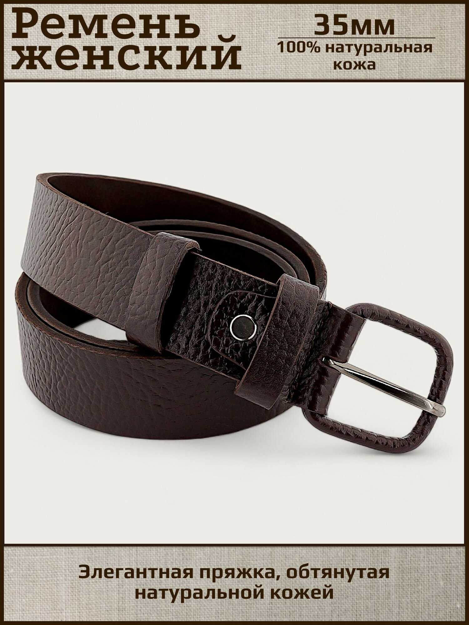 Ремень женский натуральная кожа AKSY BELT, темный коричневый, фактурный, кожаная пряжка, 105 см