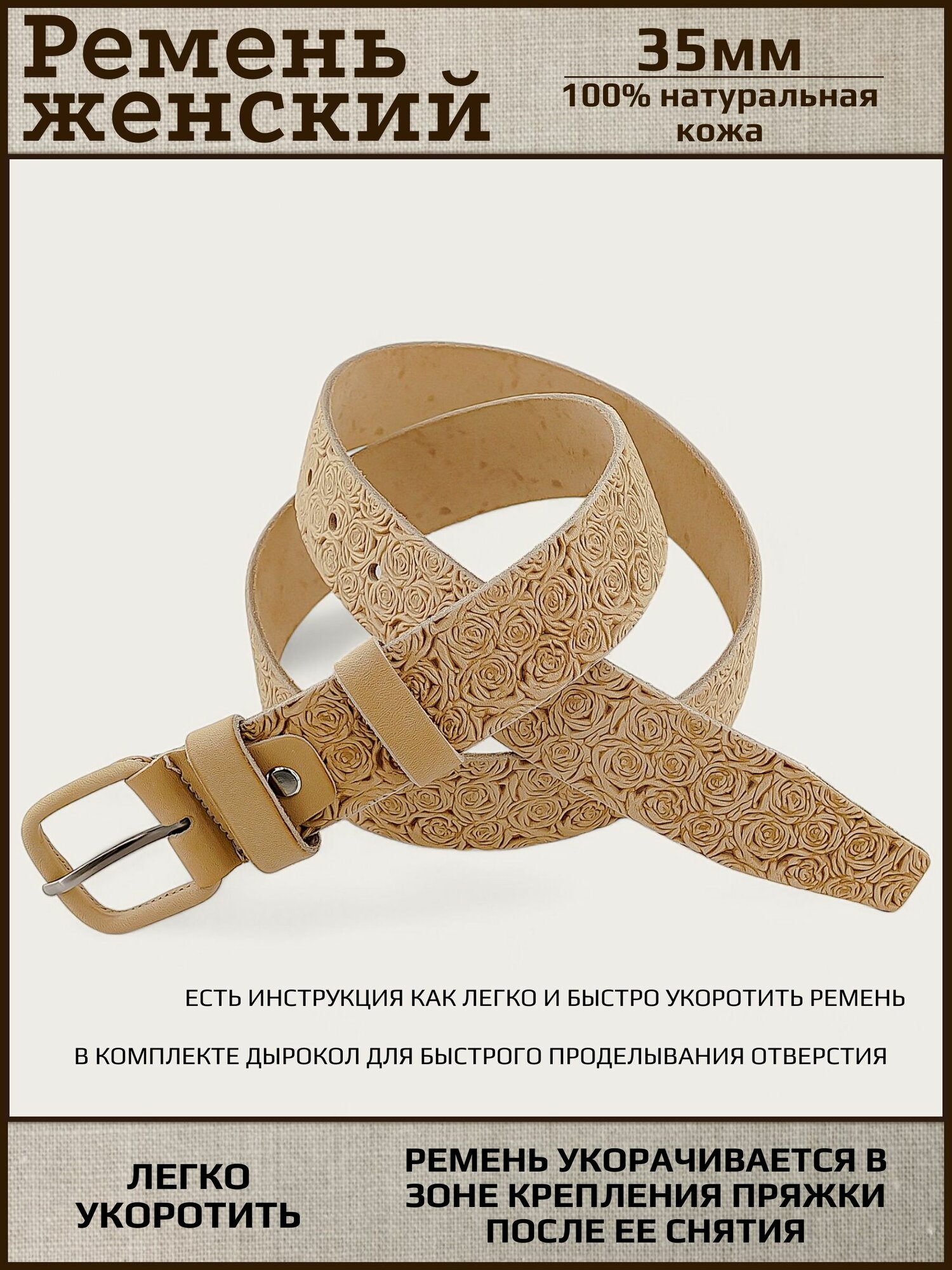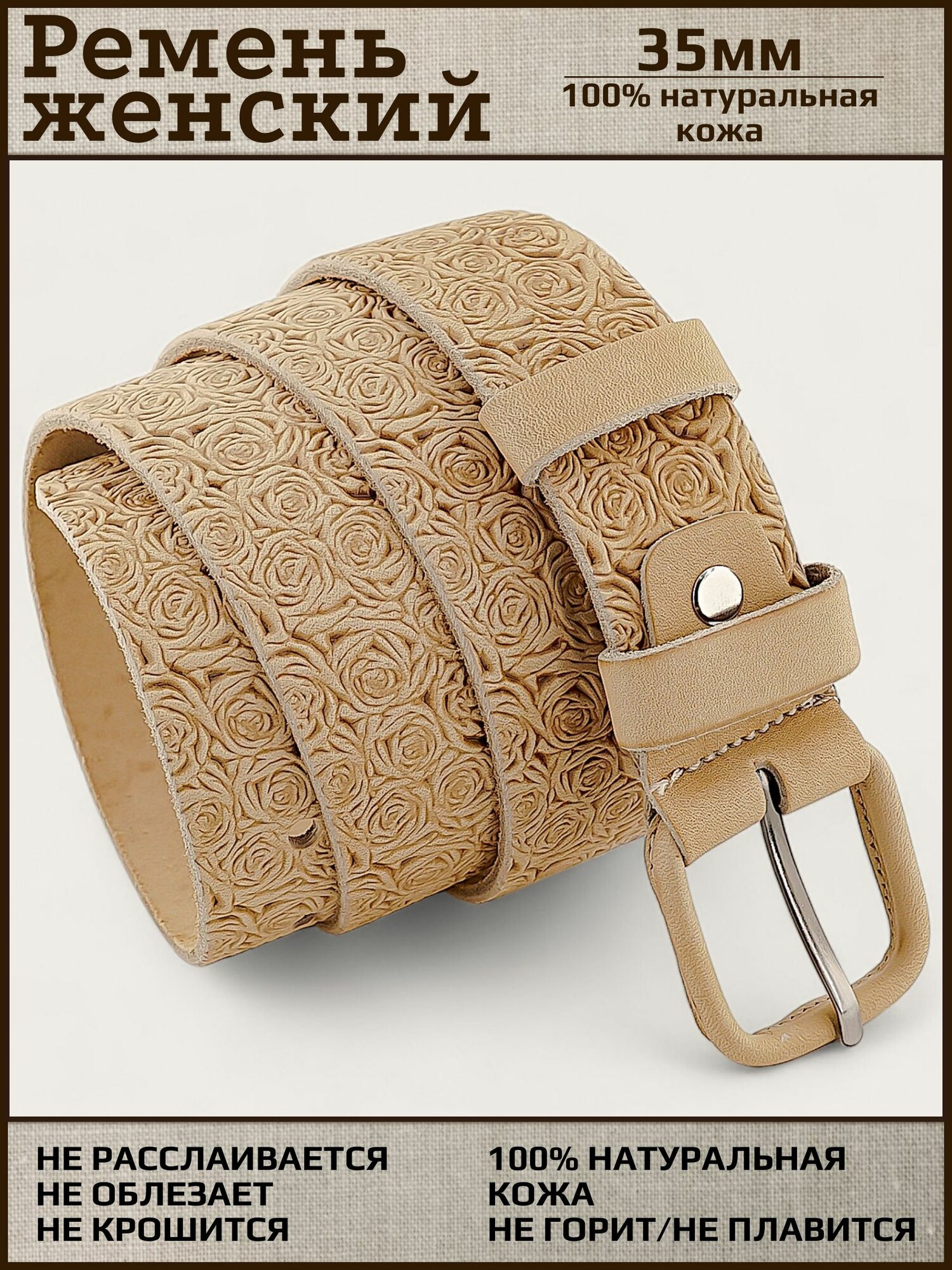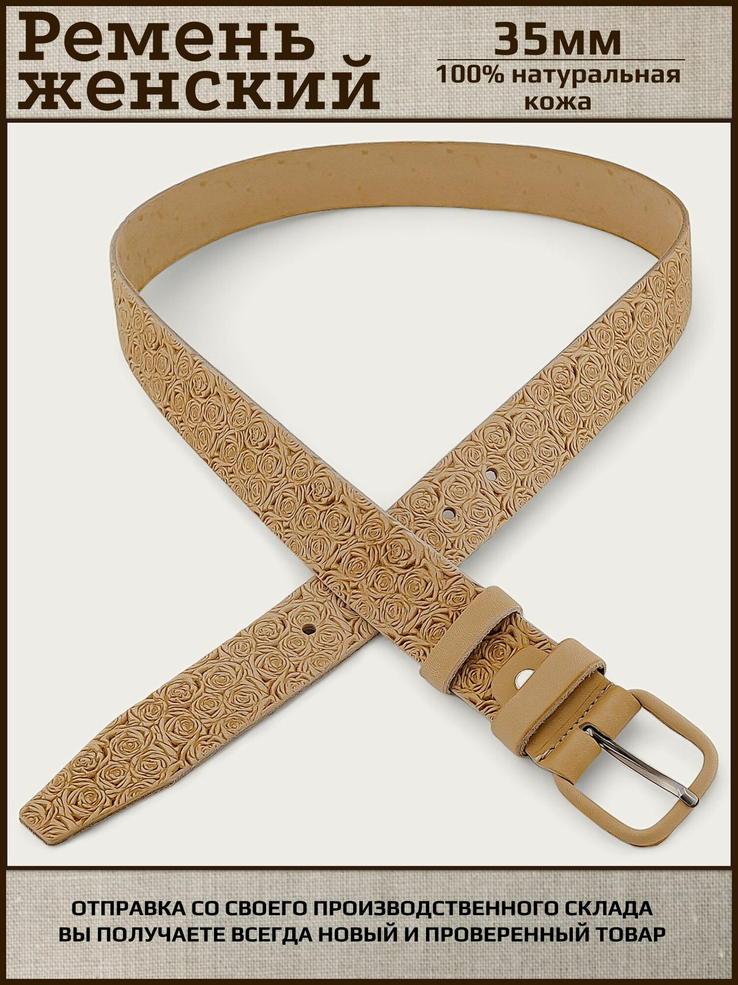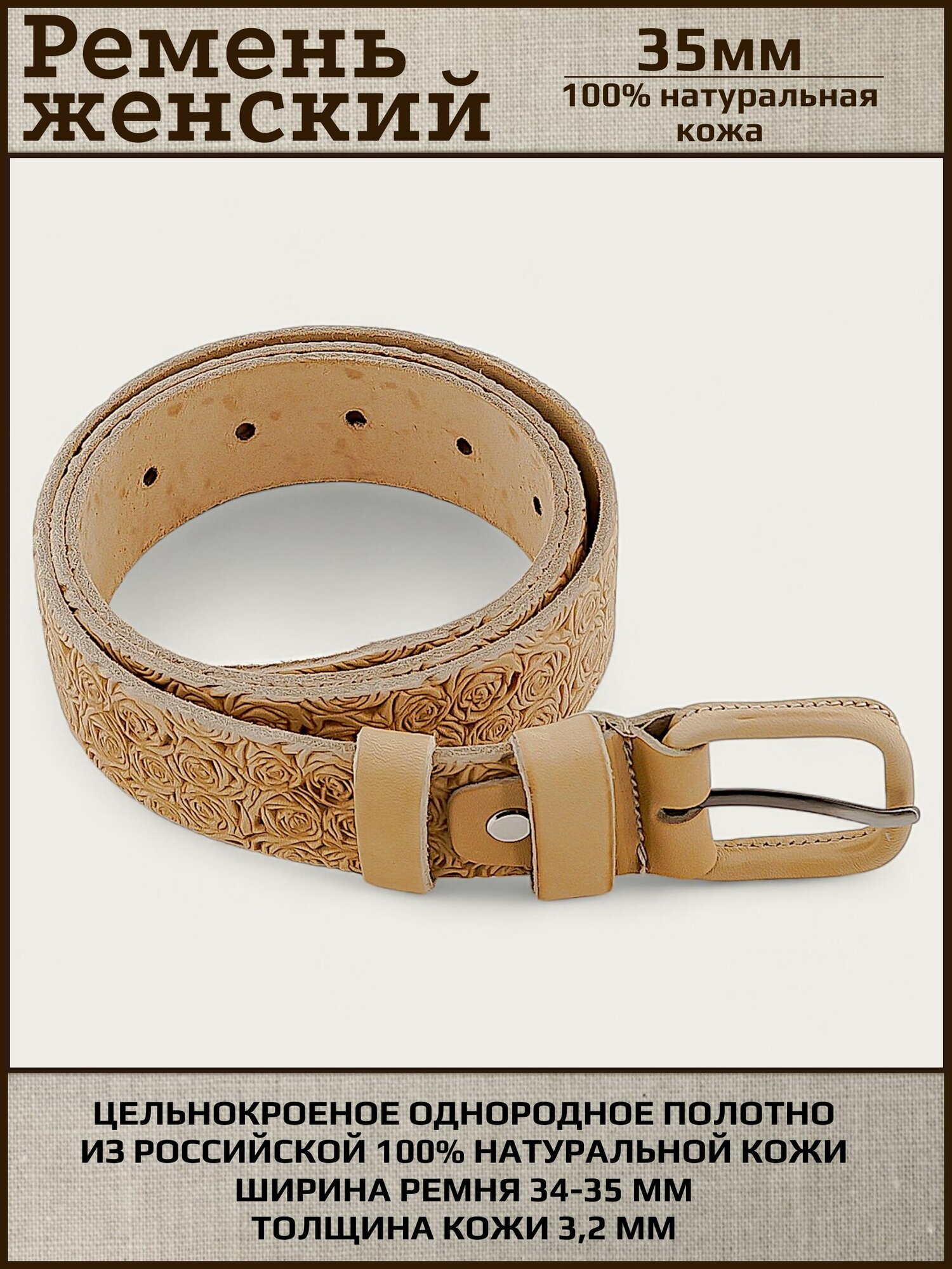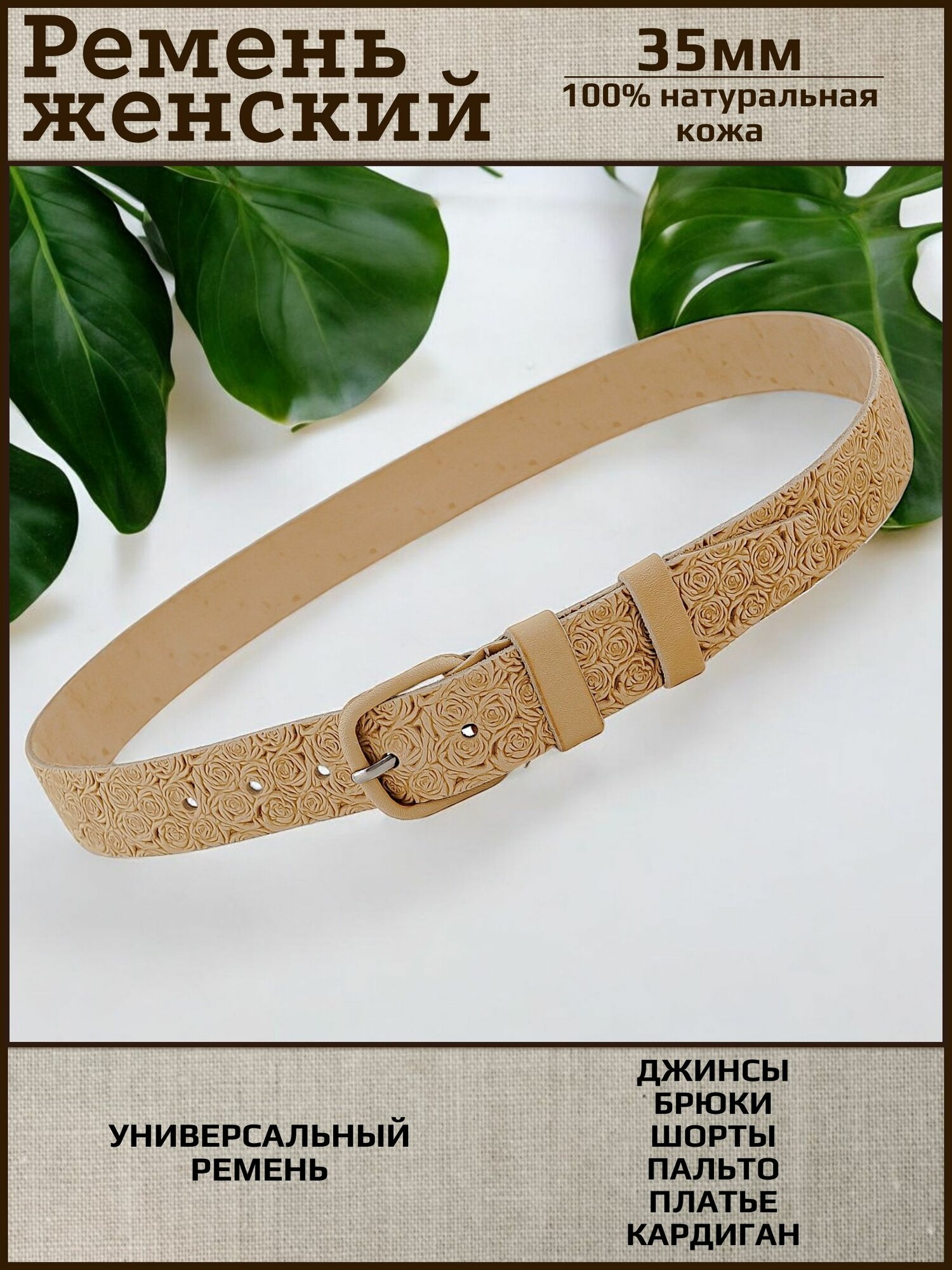 Ремень женский натуральная кожа AKSY BELT, бежевый, роза, кожаная пряжка, 95 см