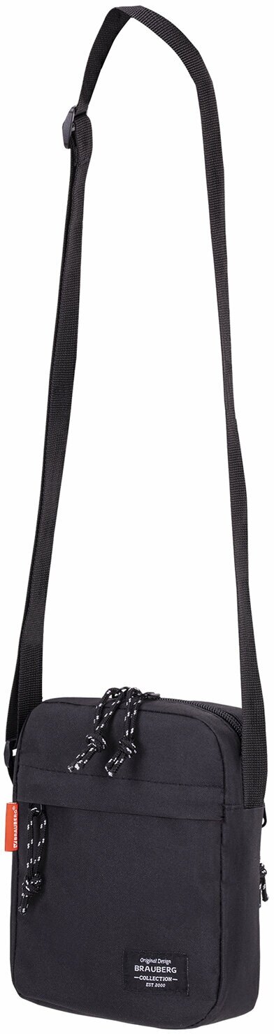 Купить Сумка через плечо кроссбоди мессенджер барсетка маленькая для документов Brauberg Compact, два кармана, черная, 19х14х5 см, 271688