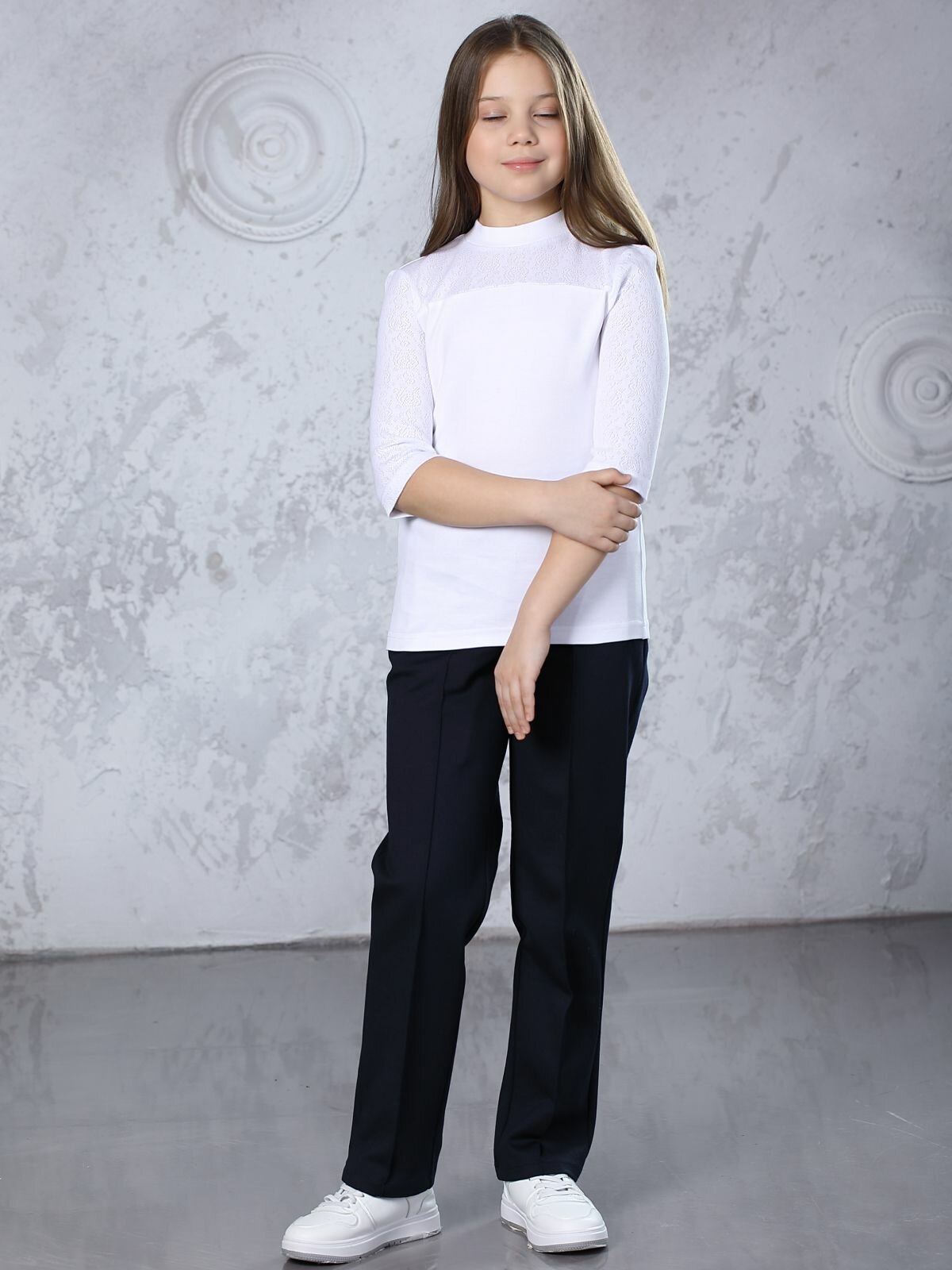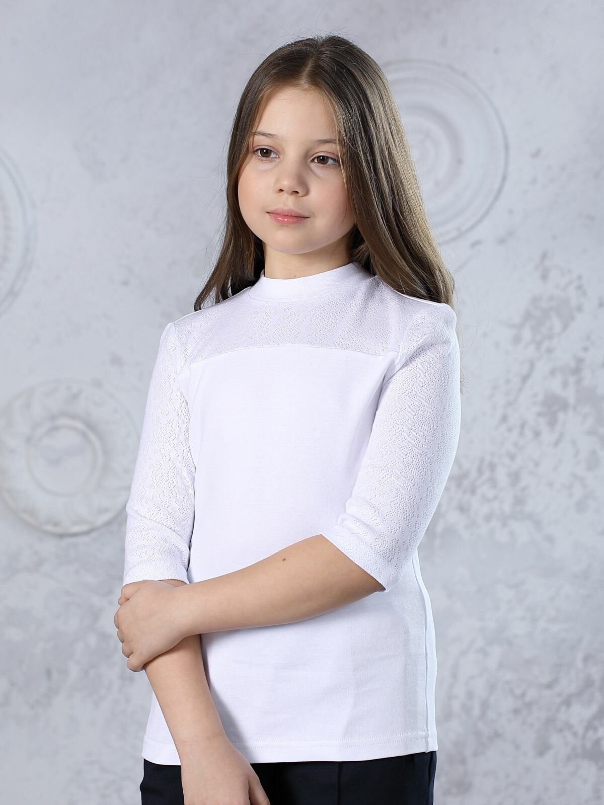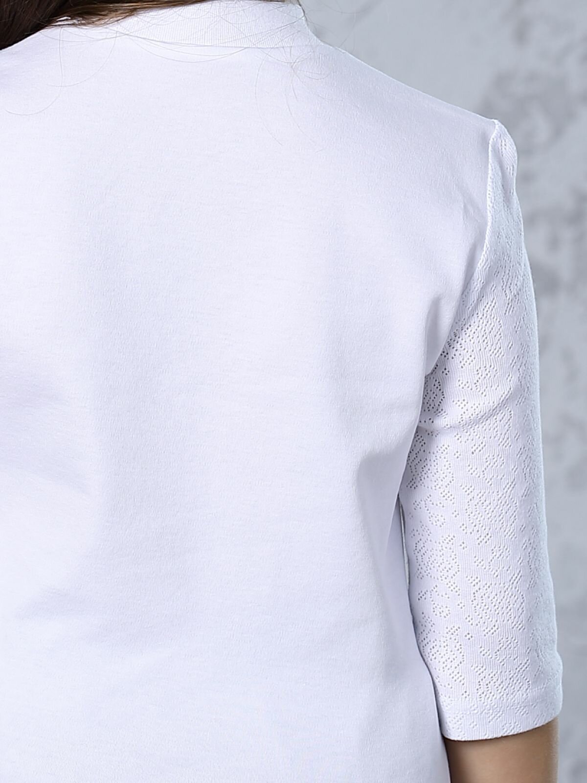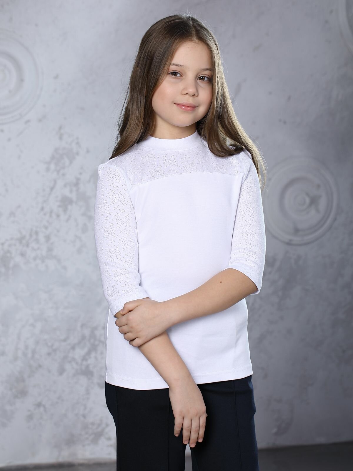Блузка школьная для девочки, белая, кружевная, трикотажная, 146