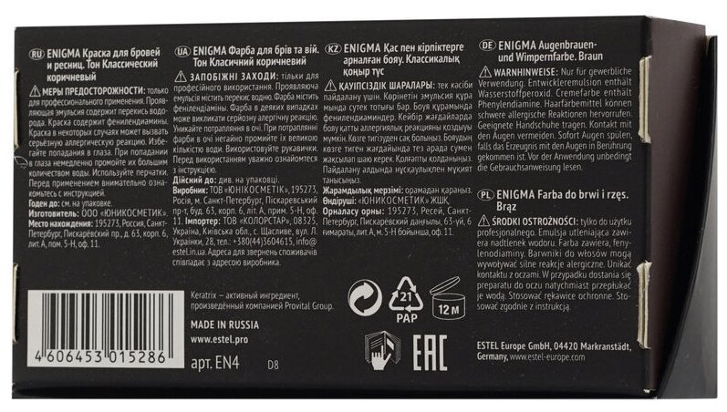 EN/4 ESTEL краска для бровей и ресниц Enigma, 20 мл, тон классический коричневый