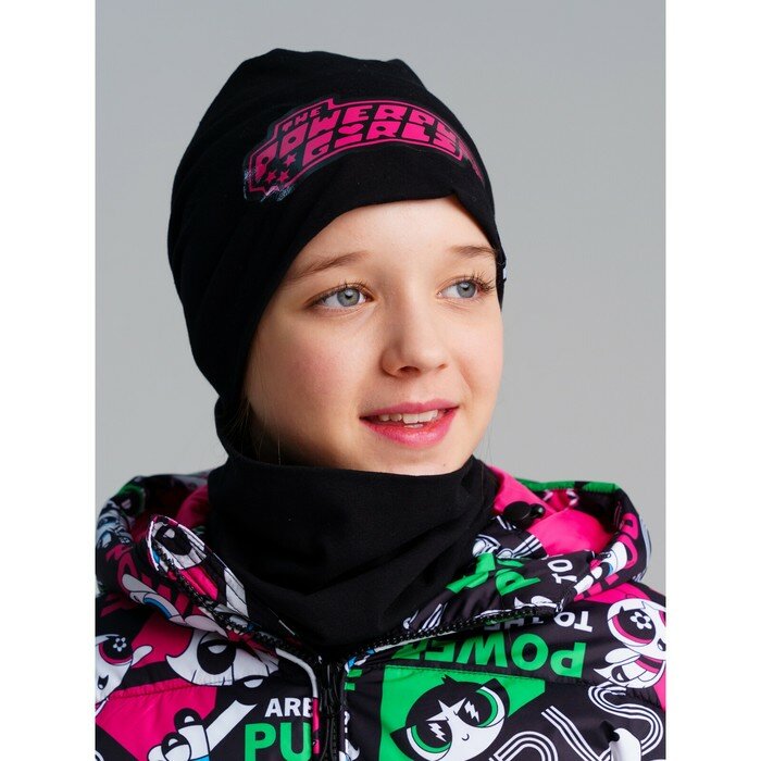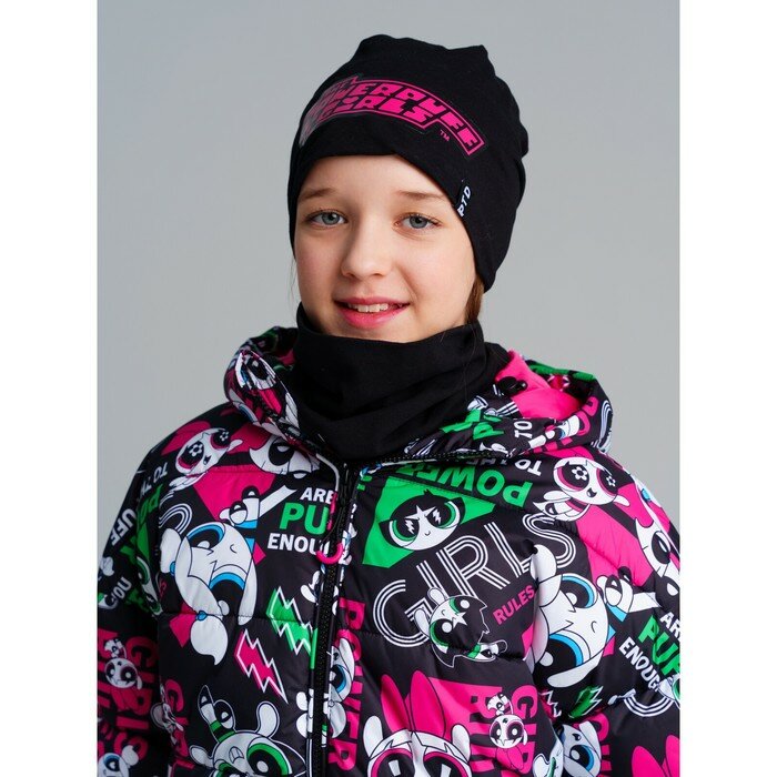 Комплект для девочки: шапка, снуд PlayToday, размер 52, черный интересное: