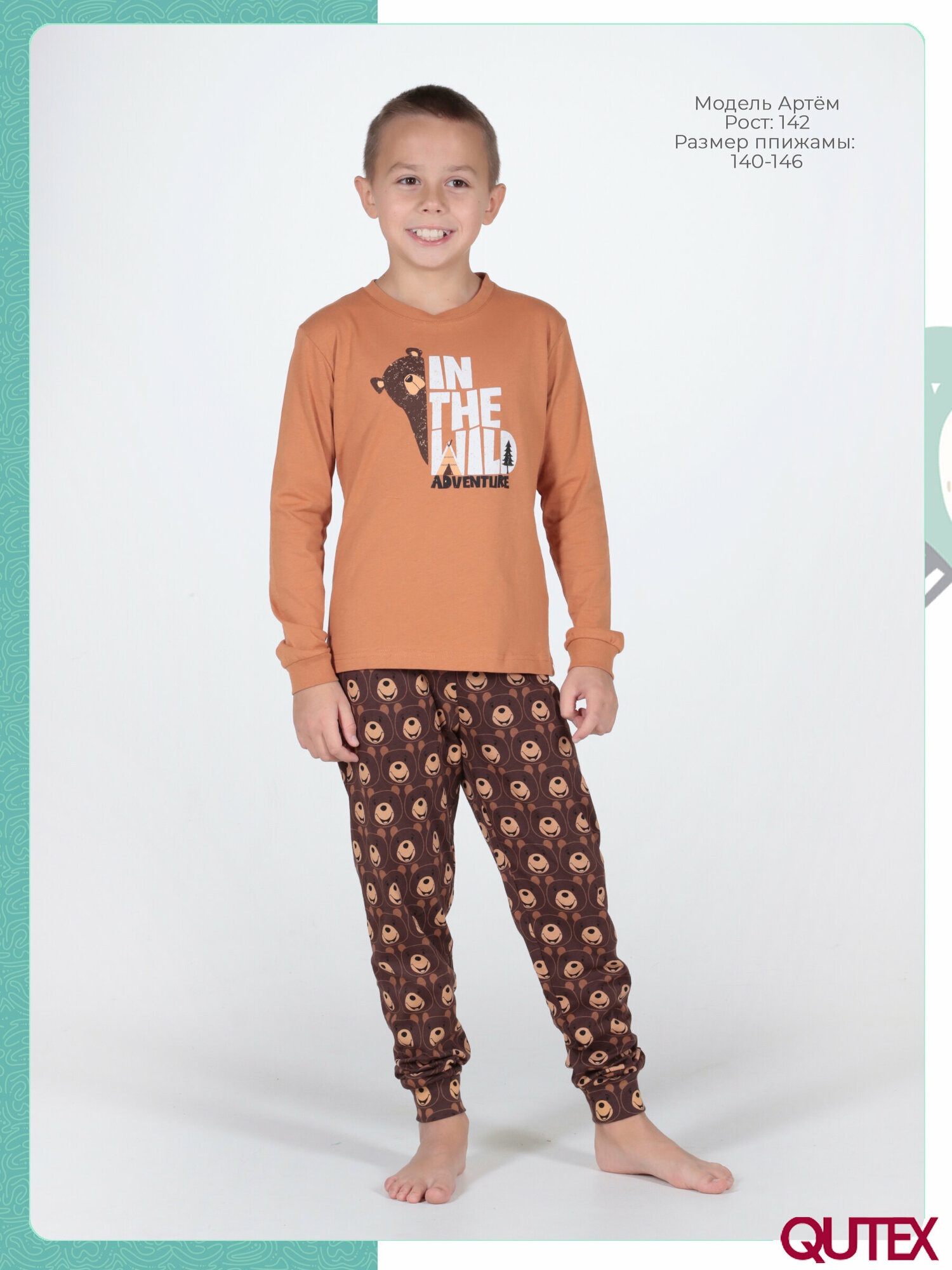Пижама QUTEX для мальчика, размер 134-140, цвет коричневый