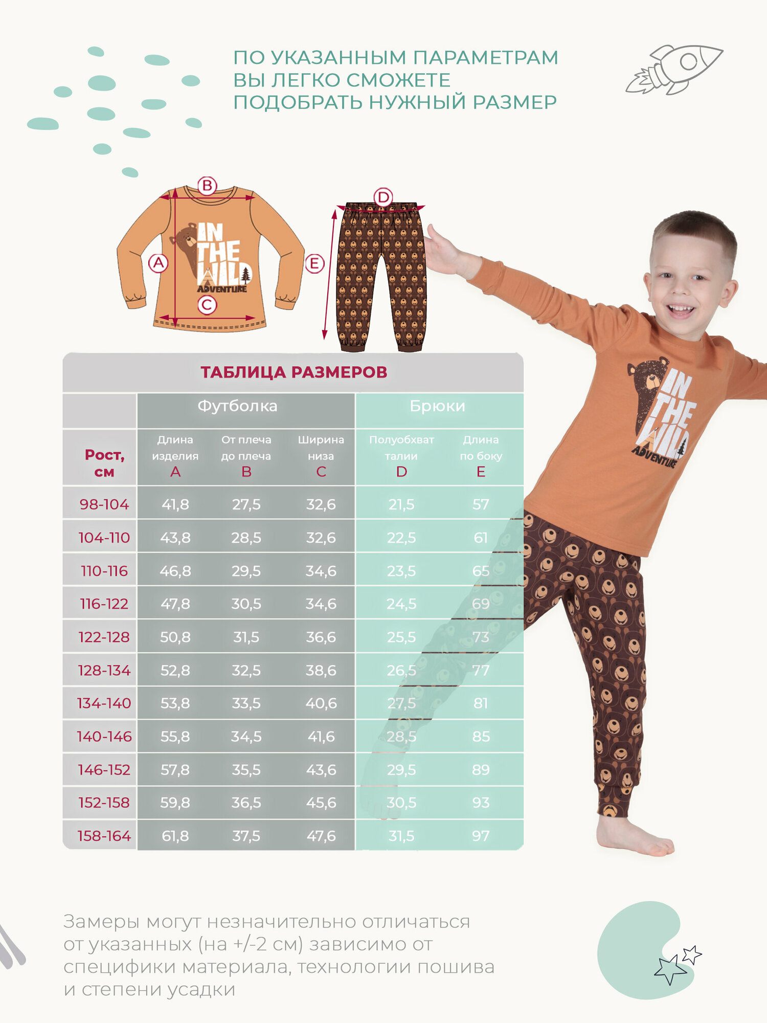СохранитьПижама QUTEX для мальчика, размер 116-122, цвет коричневый интересное: