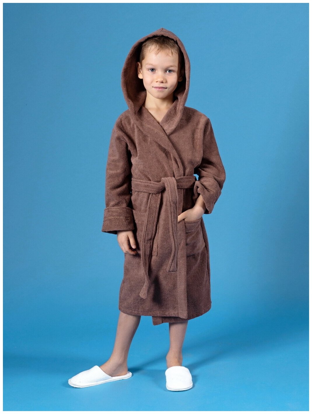 Купить Детский махровый халат с капюшоном Росхалат, коричневый. Размер 26-28