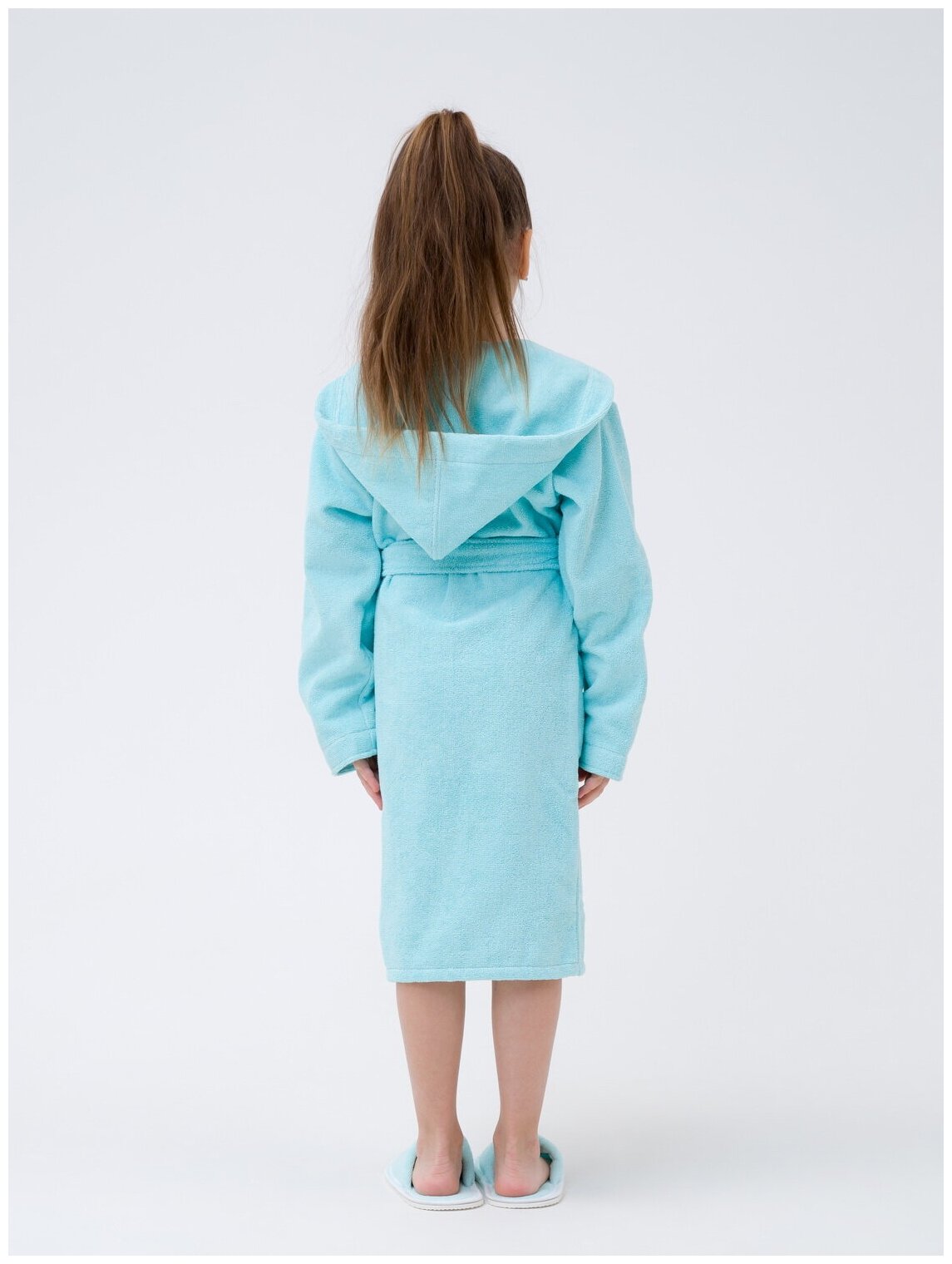 Детский банный махровый халат бирюзовый с капюшоном Росхалат для девочек для мальчиков 134-146