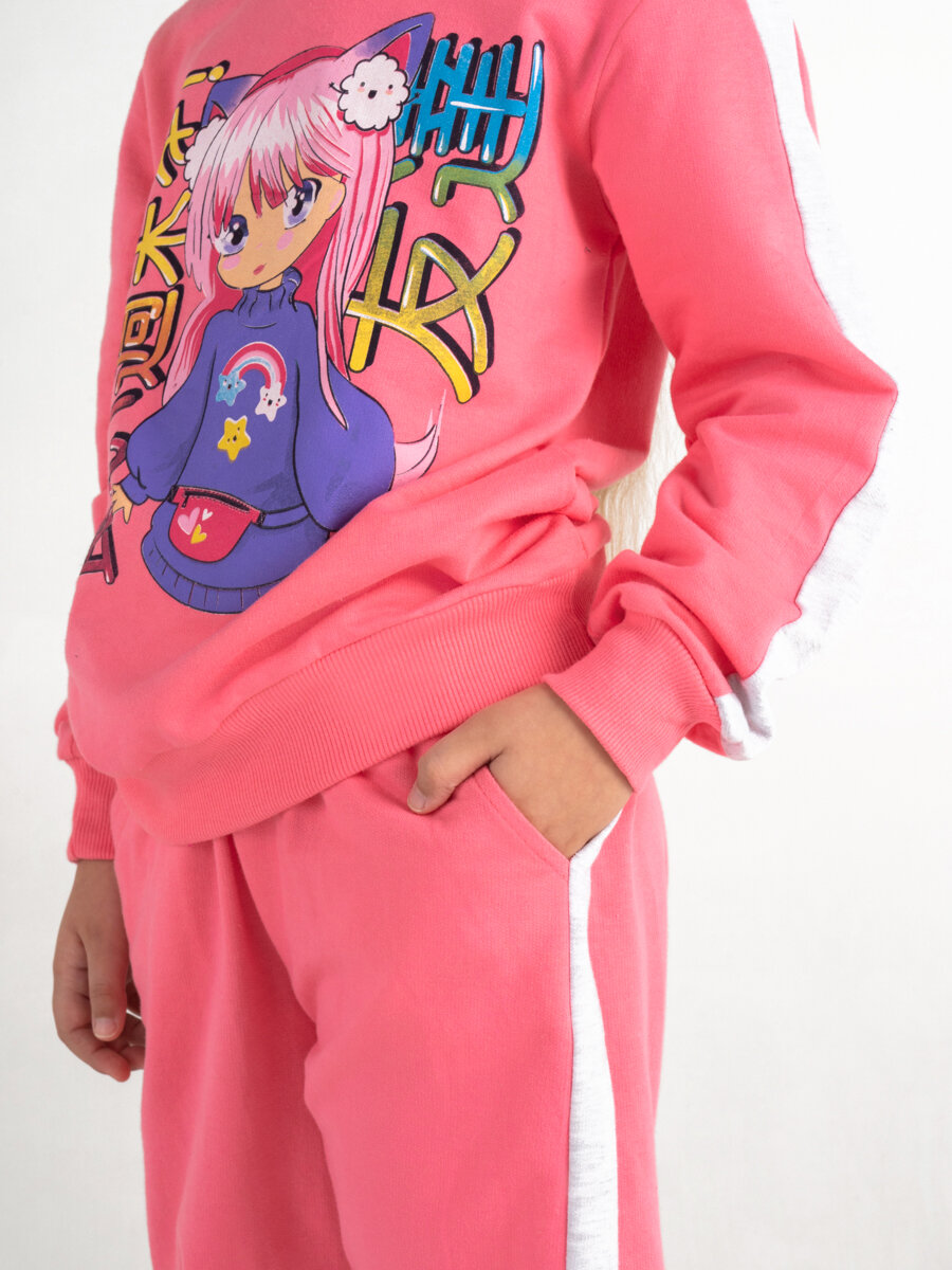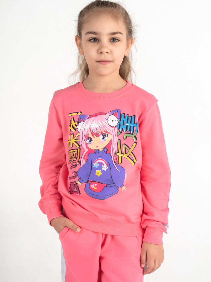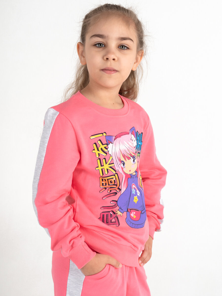 Спортивный костюм для девочки "Сакура", рост 122, розовый, футер, без начеса, детский трикотаж, хлопок, худи, джоггеры, детский интересное: