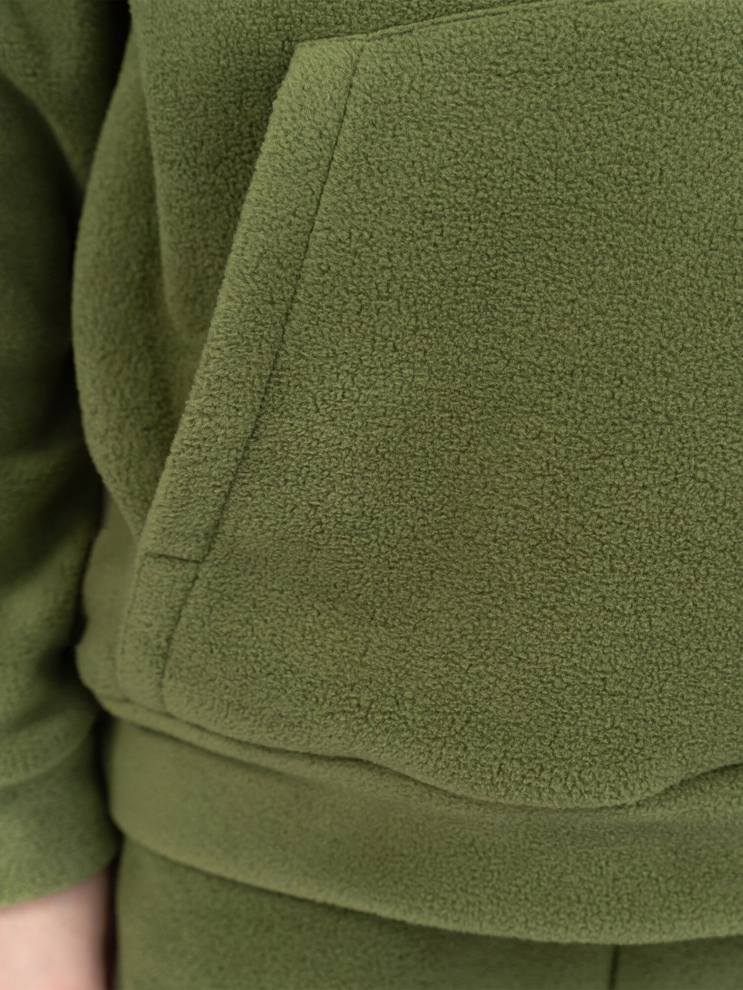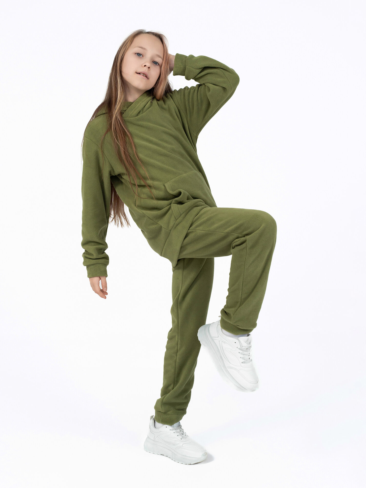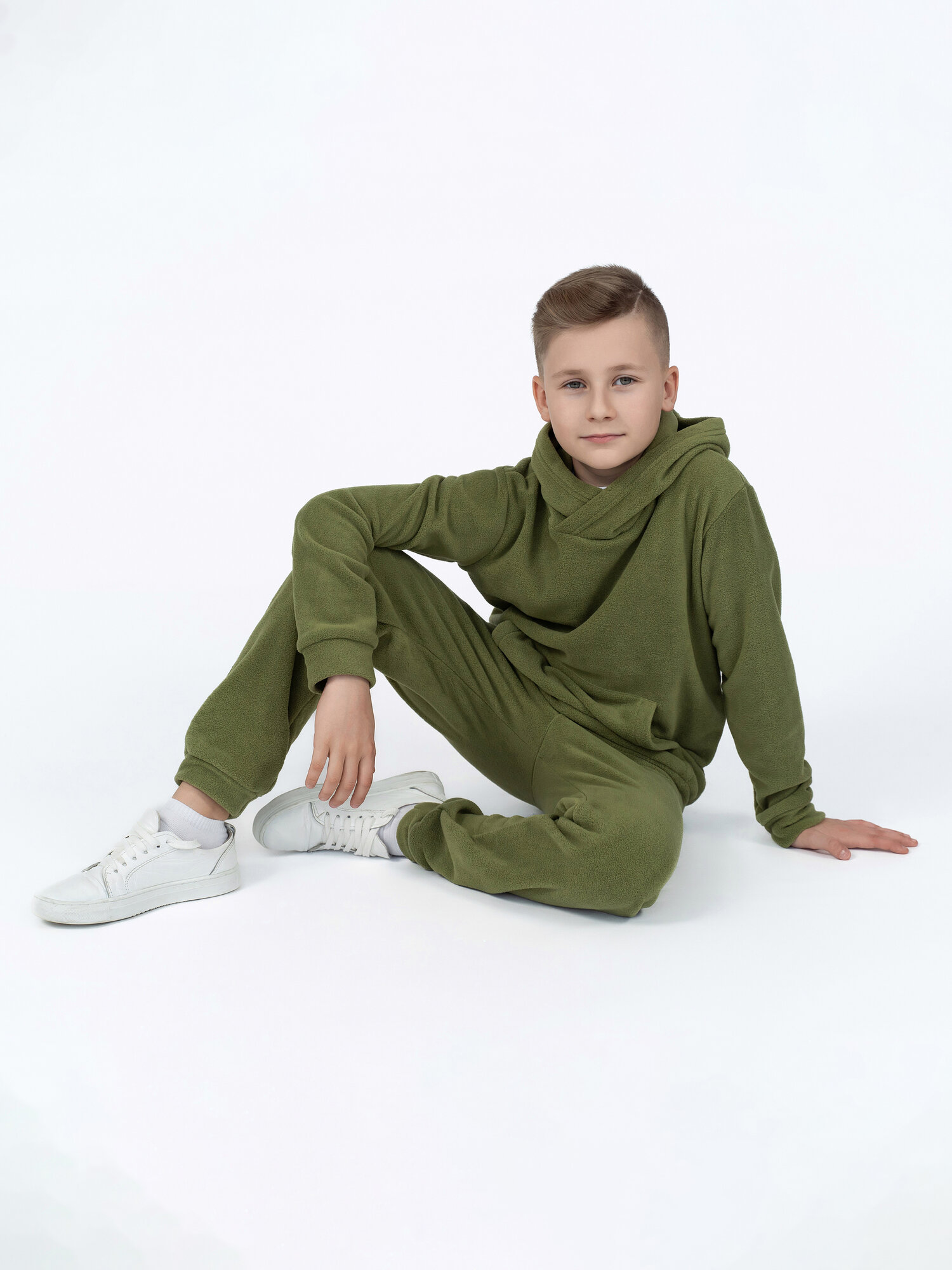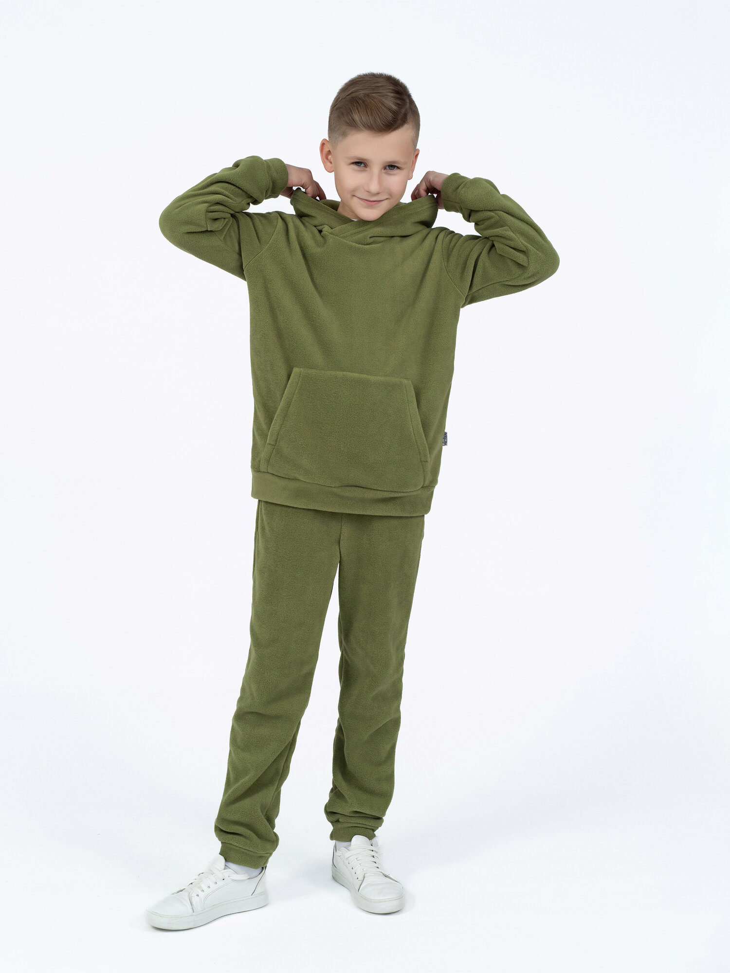 Комплект детский, флисовый,Утенок 7043г(ш),толстовка с капюшоном и брюки на рост 140 см, хаки