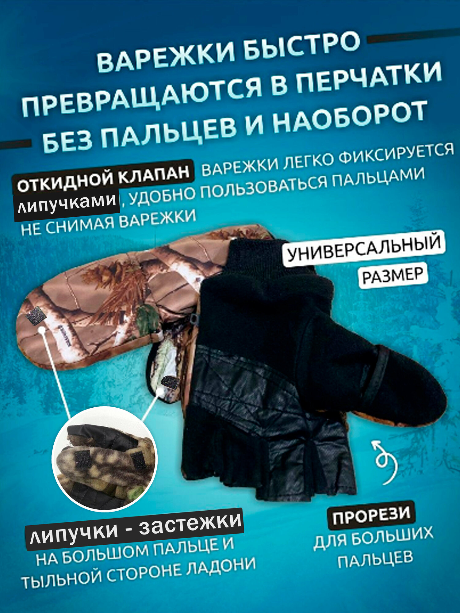 Купить Варежки-перчатки с откидным клапаном на липучке