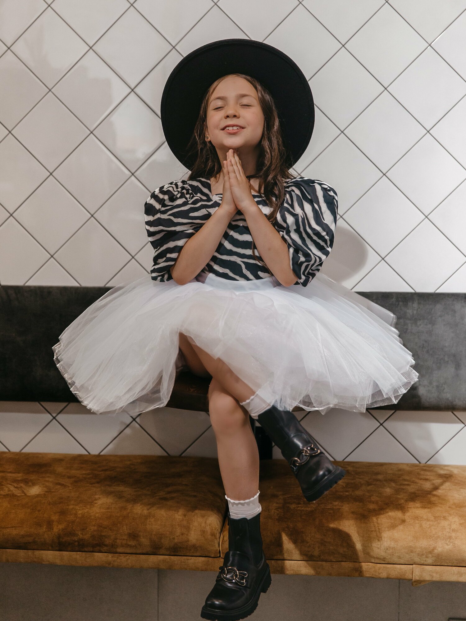 Платье-пачка белая зебра 116 см шелковое нарядное