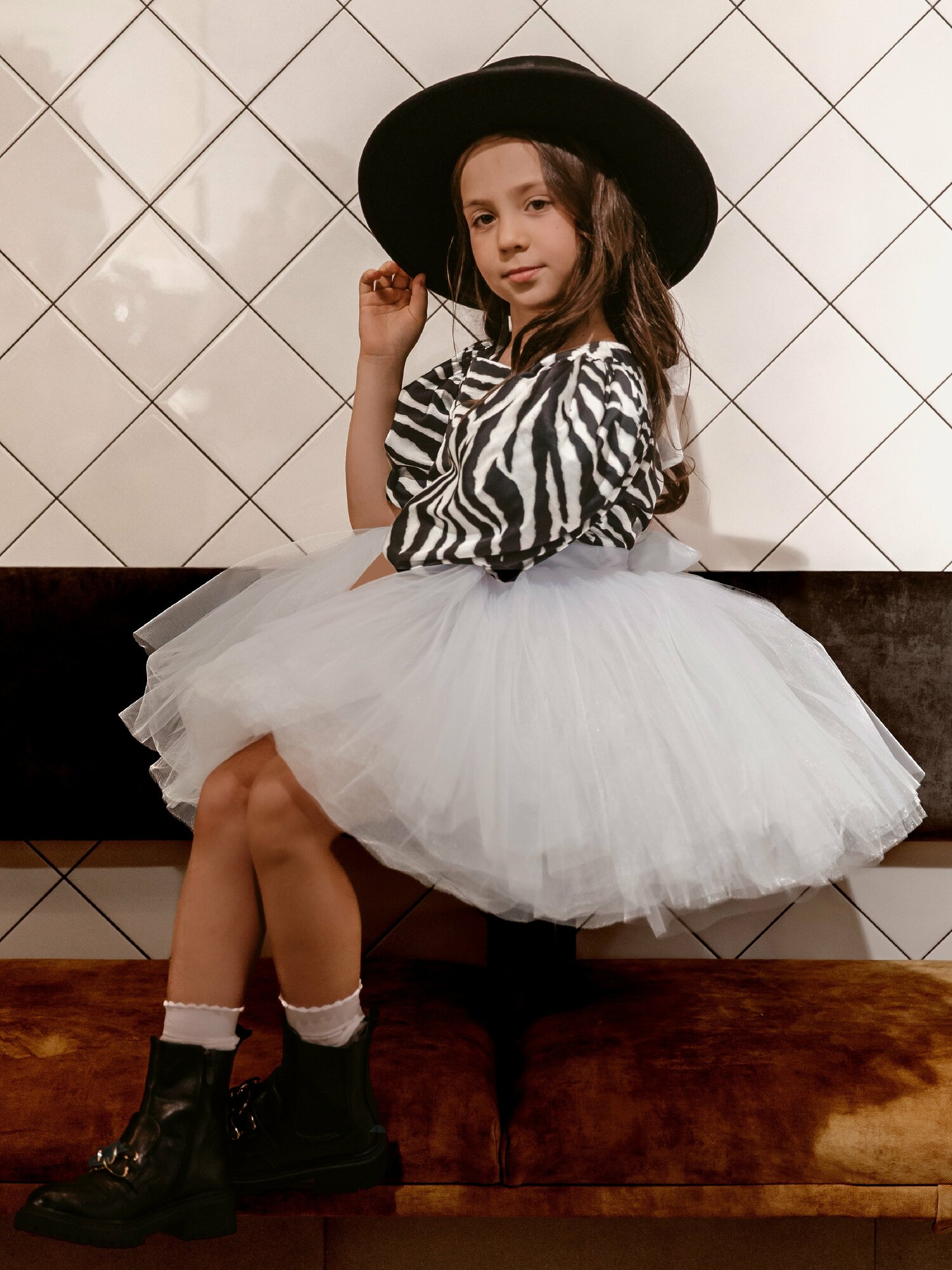 Платье-пачка белая зебра 122 см шелковое нарядное