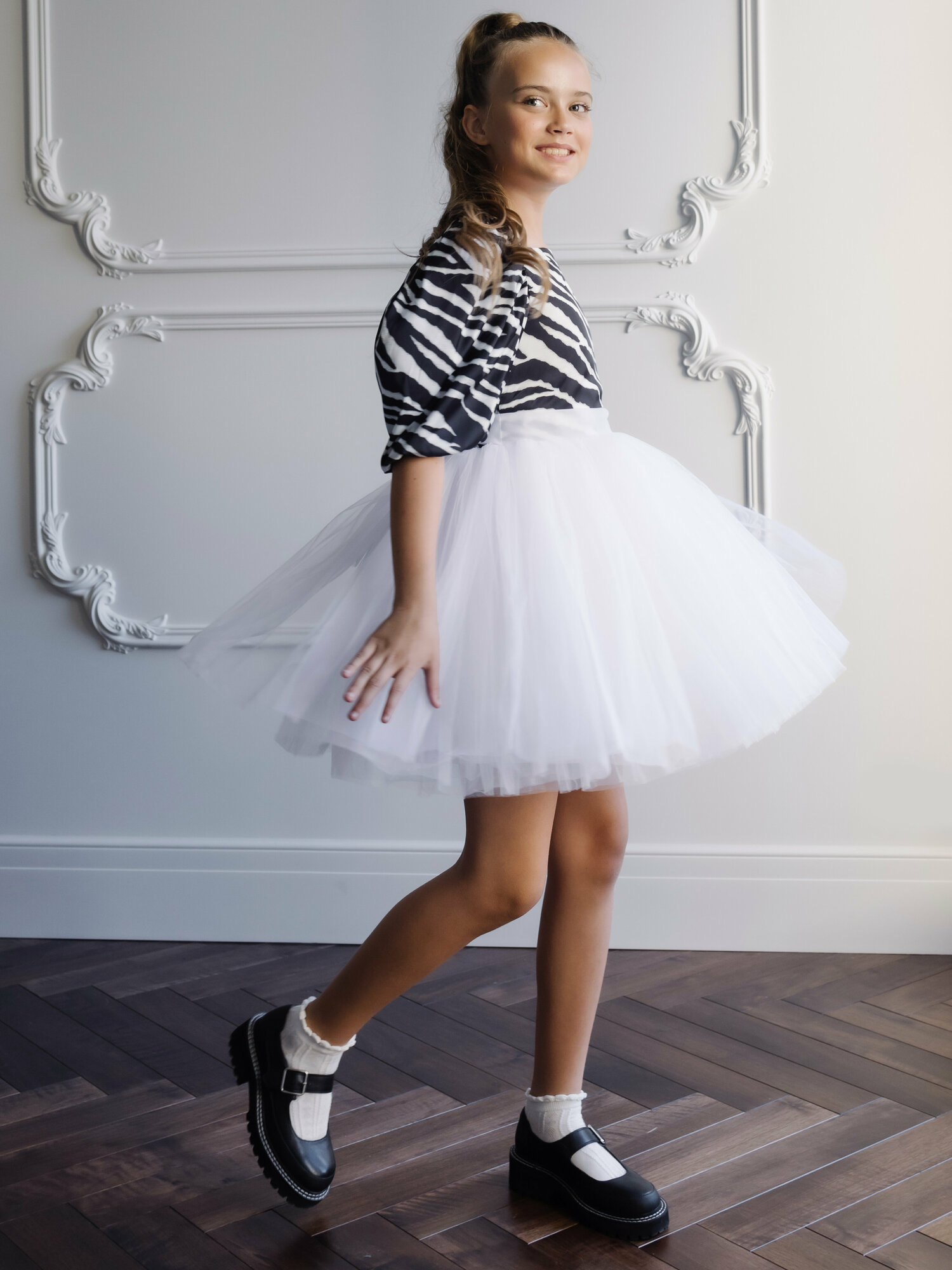 Платье-пачка белая зебра 110 см шелковое нарядное